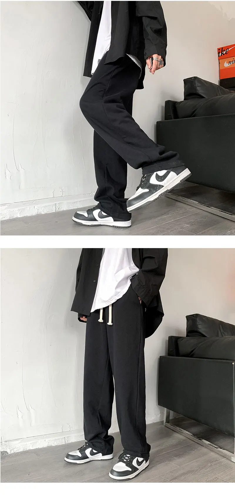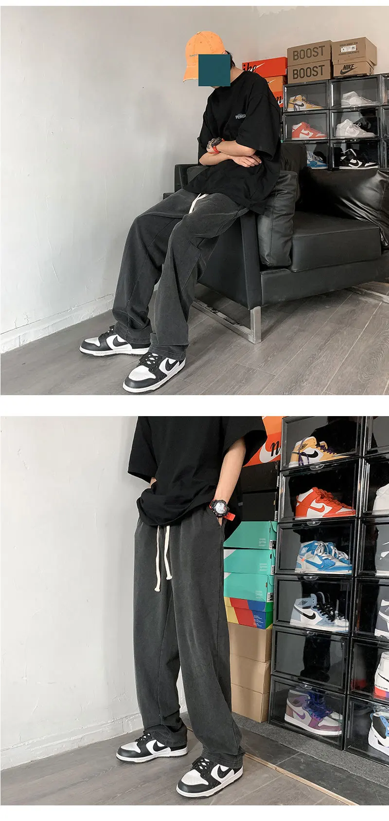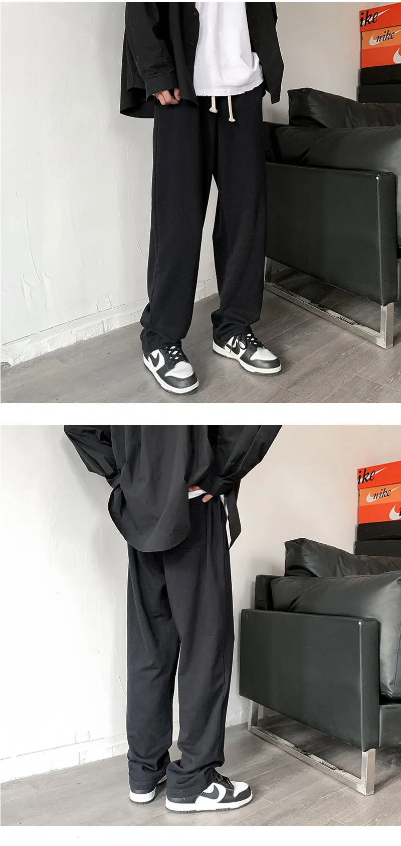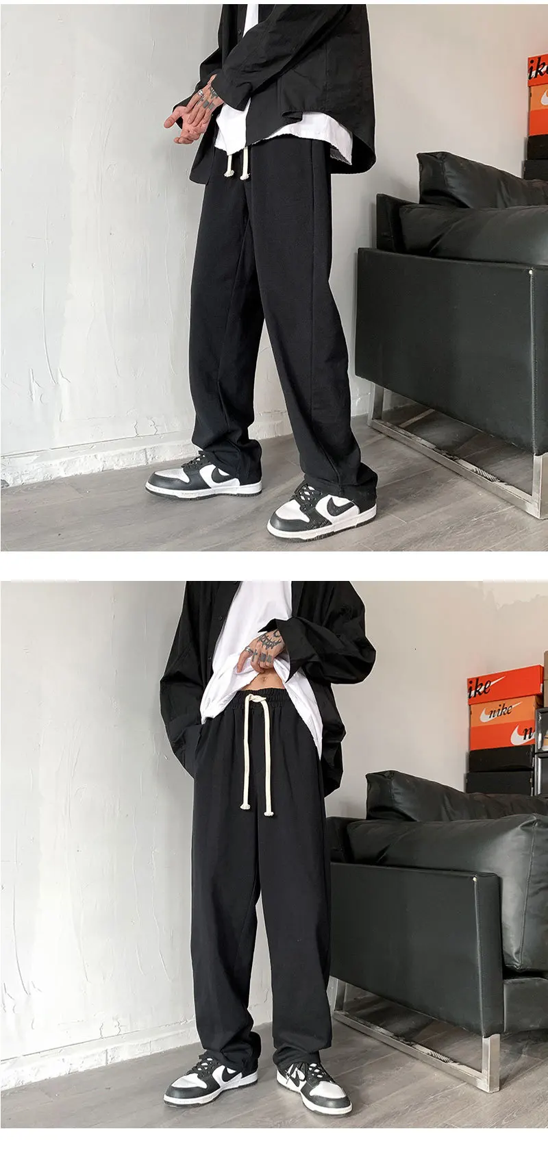 Однотонные прямые женские брюки Hybskr в Корейском стиле, повседневные спортивные брюки оверсайз с поясом на резинке, модные женские брюки