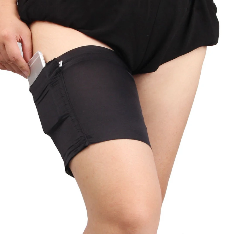 Женские эластичные ленты до бедра, черные, высокие, эластичные, теплые, невидимые, карманные, для телефона, батарея, Нескользящие, противофрикционные