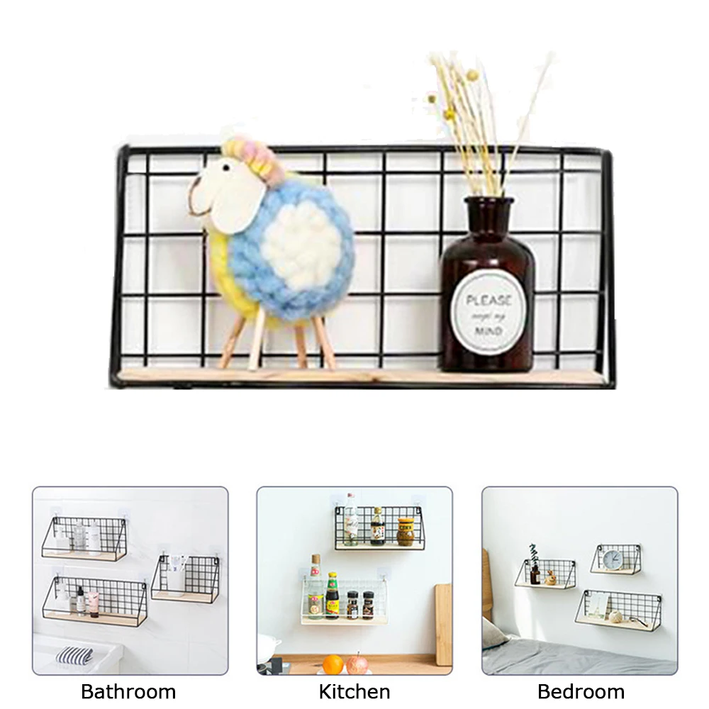 Деревянная железная настенная полка без отверстий, настенный стеллаж для кухни, спальни, домашний декор, детская комната, настенный декоративный держатель сделай сам
