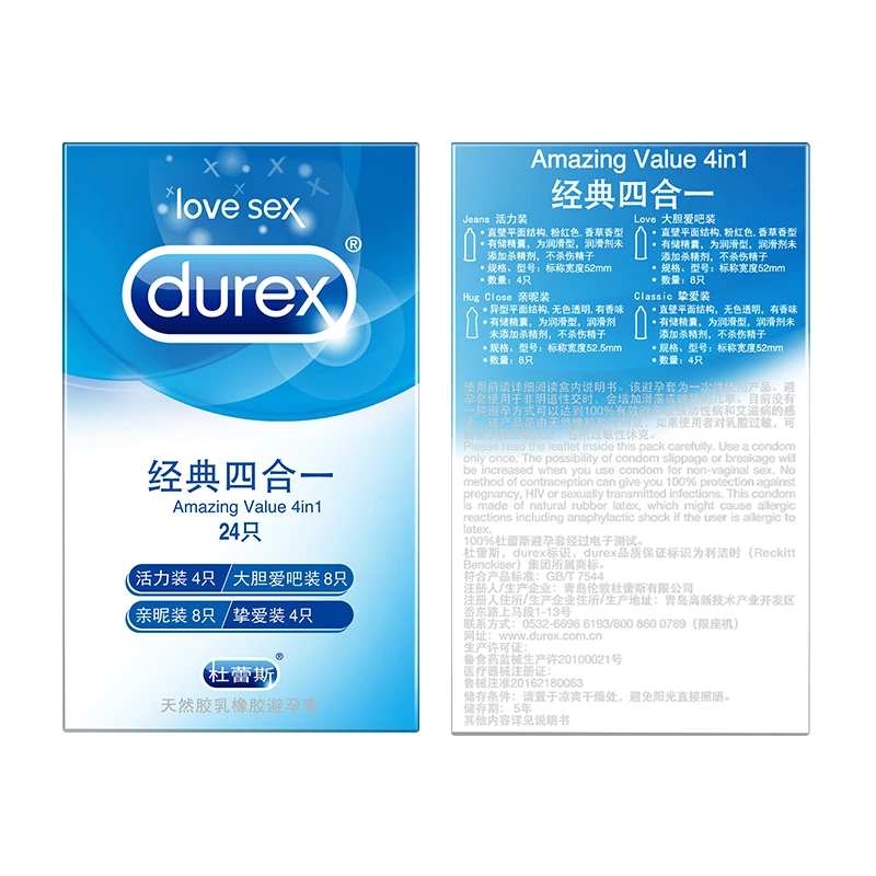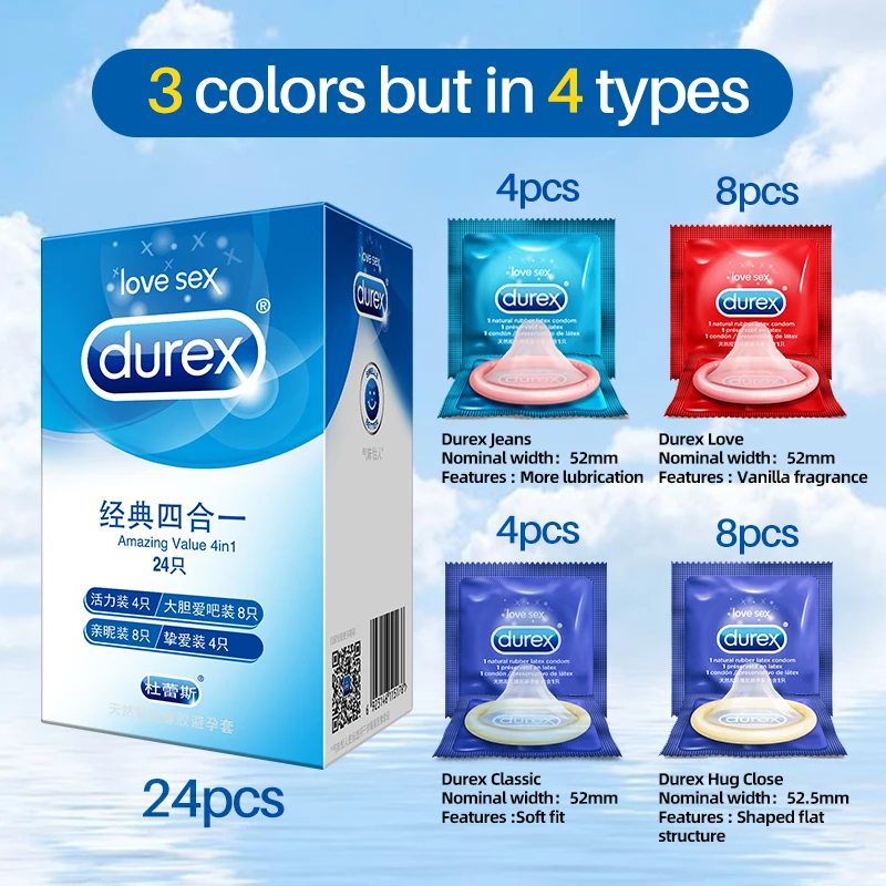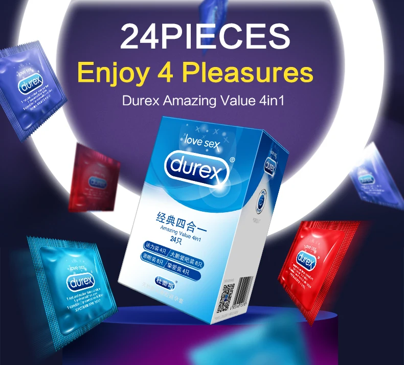 Латексные презервативы Durex, 4 в 1, 24 шт., 4 типа, для мужчин, 52...