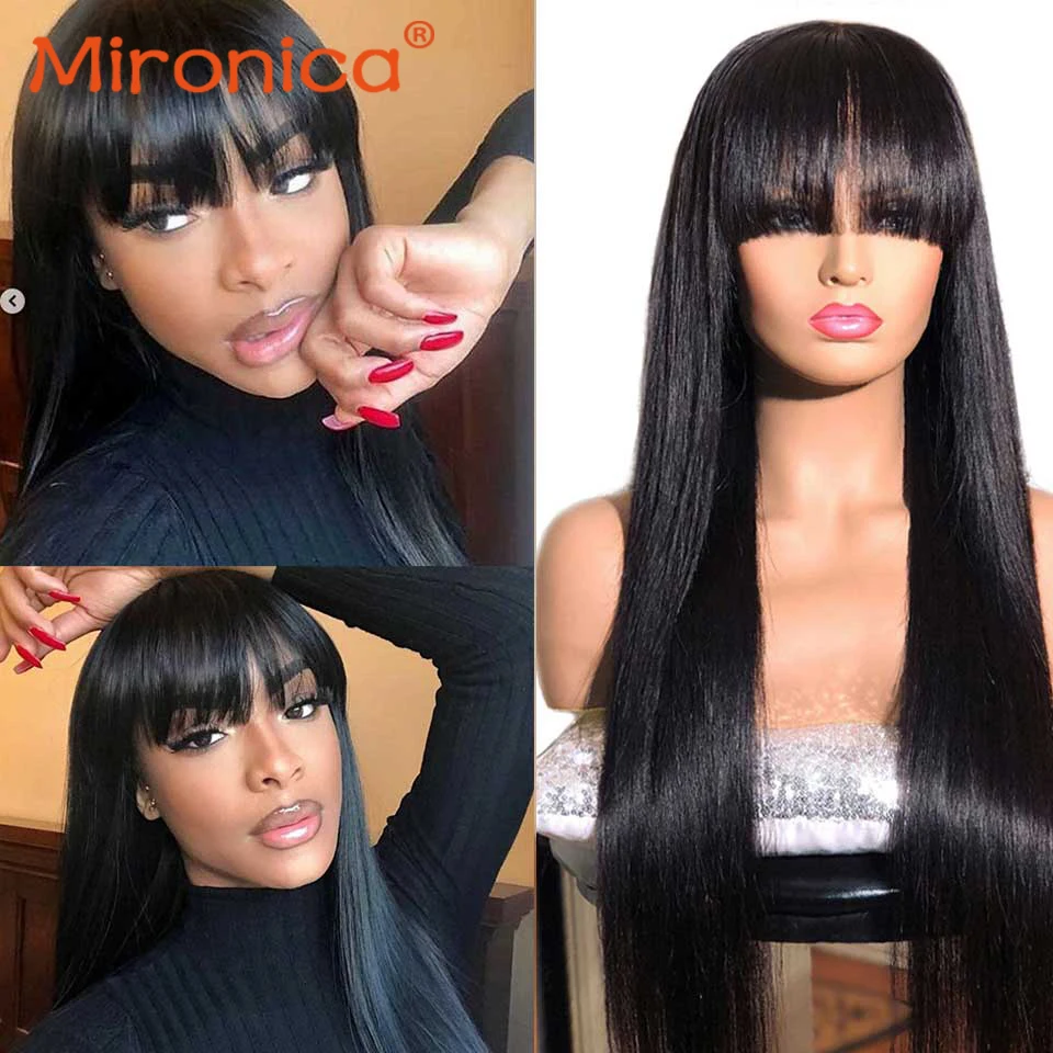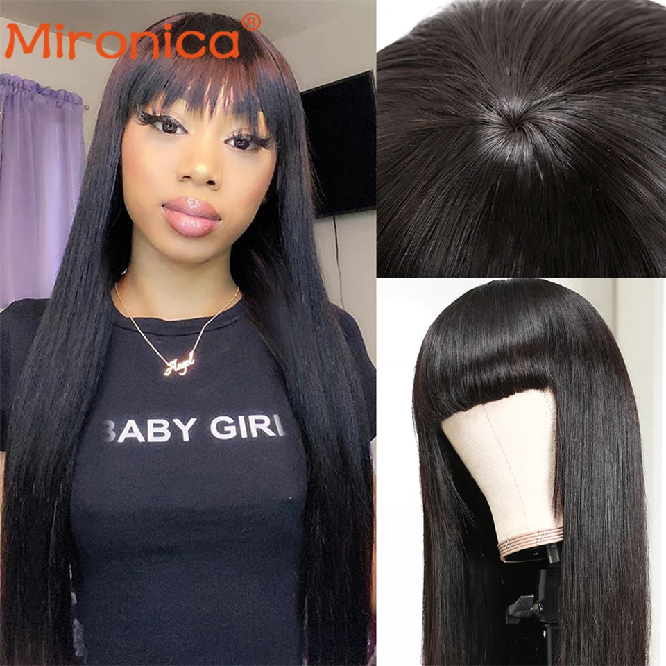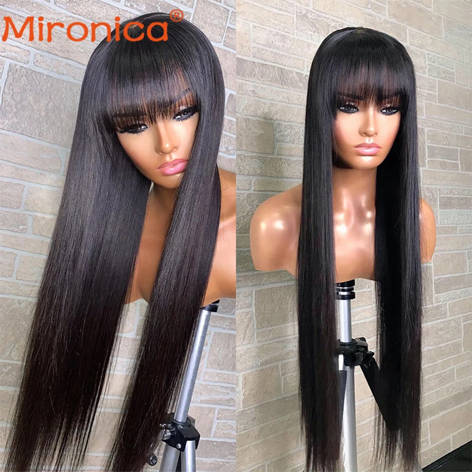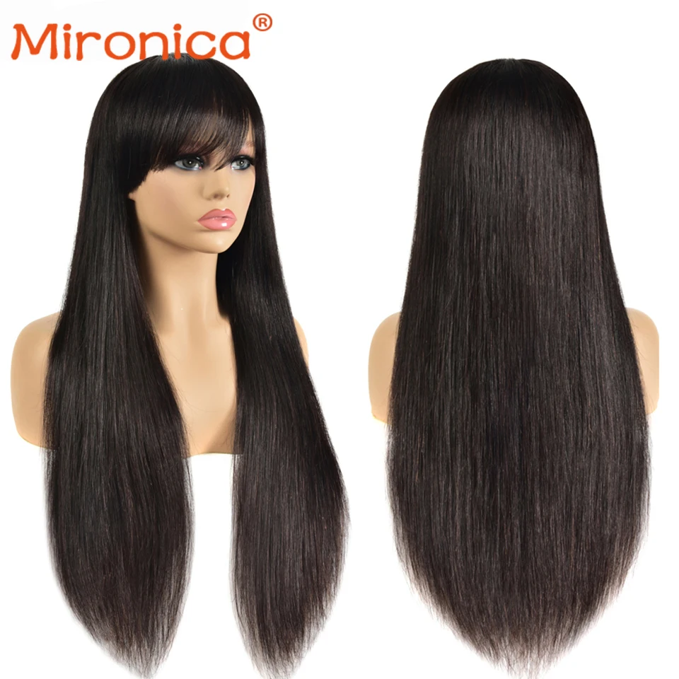 Парик Mironica, пришивной парик из натуральных волос, прямой малазийский парик с челкой естественного цвета, для женщин, без клея