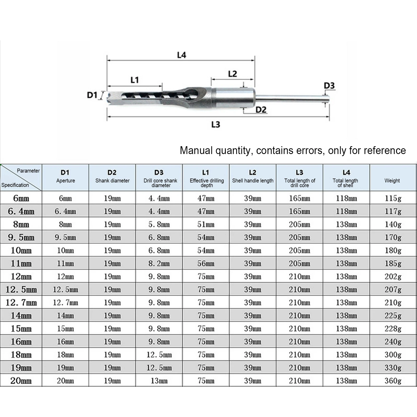 Применение: используется для деревообработки штамповки 1. Эта долото отлично подходит для бурения квадратных отверстий в дереве с помощью Mortising машины или mortising приложения. 2. Сверло с квадратным отверстием не может быть использовано на электрической дрели, сверло с квадратным отверстием должно подходить для сверления с квадратным отверстием (врезной и tenon станок) для использования. 3. Врезное и круглое отверстие, просверленное страшным + наружным рукавом в середине комбинации. 4. Снижает трудоемкость строительных работников, ускоряет скорость строительства, снижает затраты на строительство для строительства, установки, ремонта, отделки промышленности. Спецификация: Материал: Высокоскоростная сталь Размер изделия: 6 мм, 6,4 мм, 8 мм, 9,5 мм, 10 мм, 11 мм, 12 мм, 12,5 мм, 12,7 мм, 14 мм, 15 мм, 16 мм, 18 мм, 19 мм, 20 мм (опционально) Посылка включает в себя: