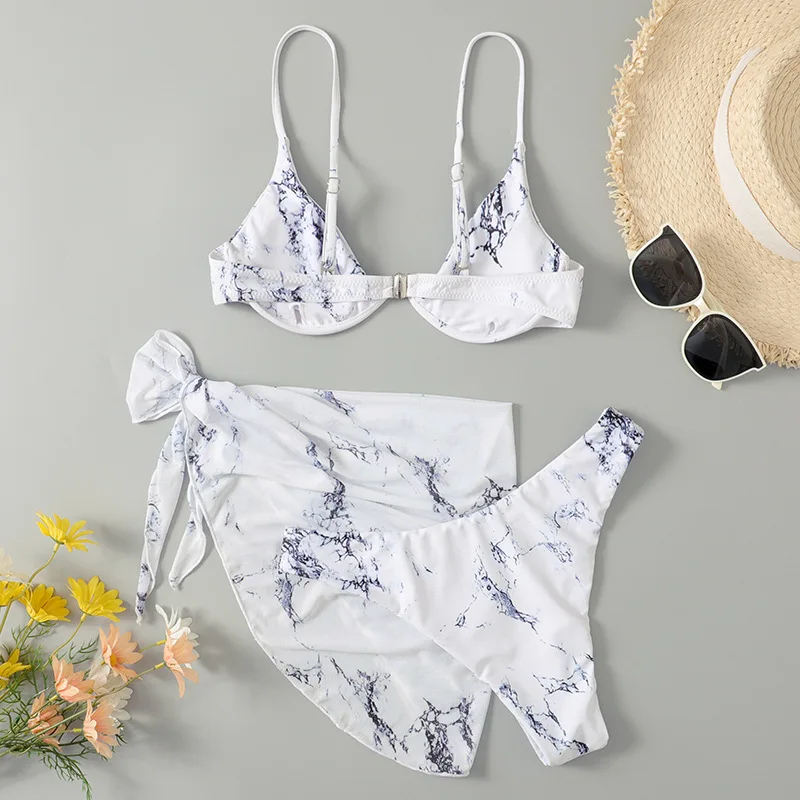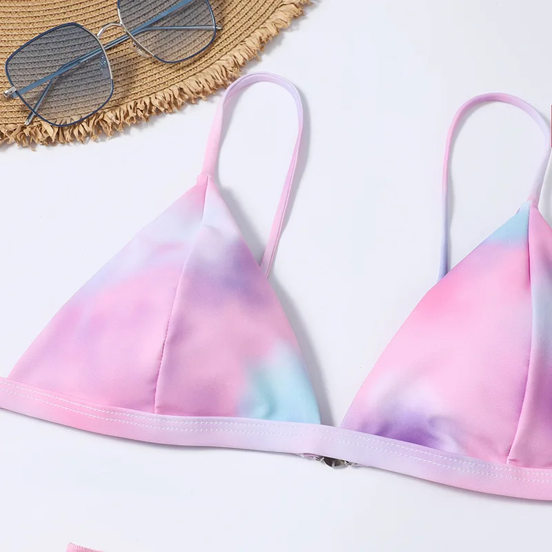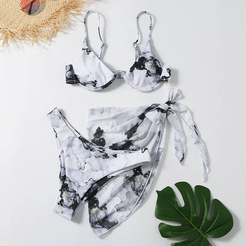Бикини женское, раздельный, с принтом тай-дай, пуш-ап, с низкой талией, 3 шт.комплект, 2021