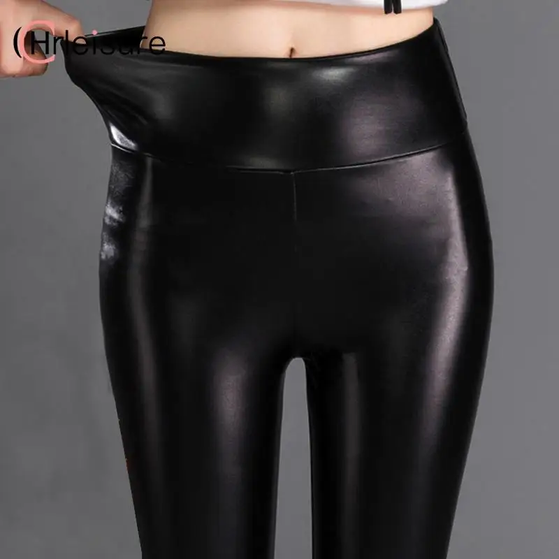 Женские кожаные брюки CHRLEISURE, теплые зимние эластичные леггинсы с флисовой подкладкой и высокой талией