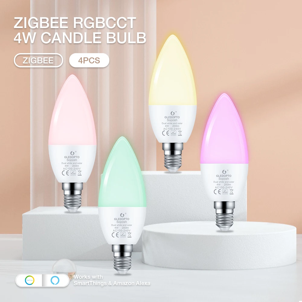 Светодиодная лампа-свеча OPTO Zigbee, 4 шт., теплый и холодный белый свет, rgb, управление через приложение, домашний декор