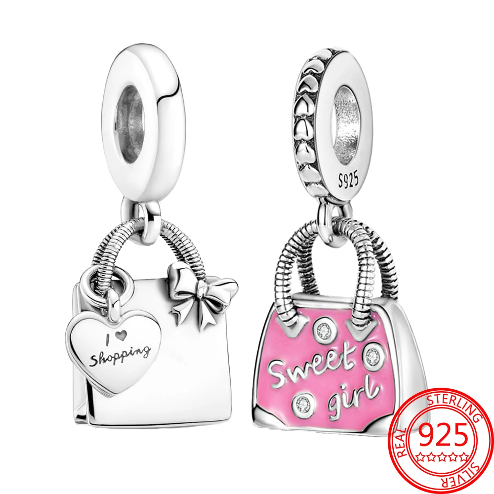 Женская подвеска-бант из серебра 2021 пробы с надписью I love Shopping Bag