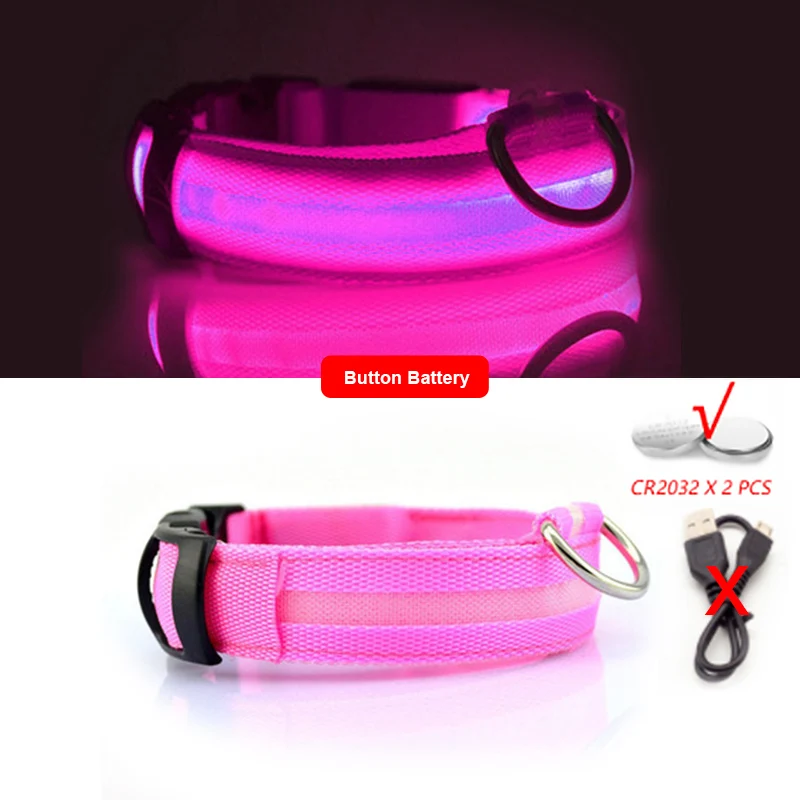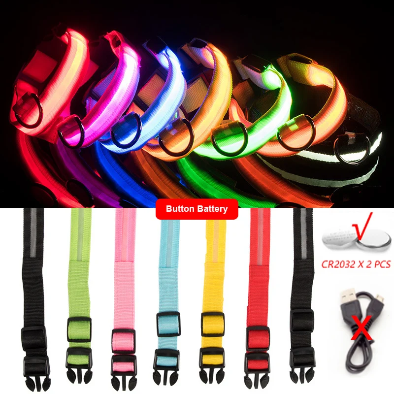 Есть две версии светодиодного воротника. 1. Версия USB для зарядкиЗарядка, как только светильник станет слабее, поможетУлучшенный сервис подъема батареи 2. Версия батареи кнопкиЗамените аккумулятор buton при выключении питанияАккумулятор CR2032 x 2 шт. Пожалуйста, выберите нужную версию.