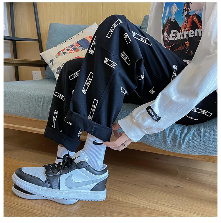 Брюки Hybskr мужские оверсайз с графическим принтом, повседневные Прямые Штаны в стиле хип-хоп, модные штаны в стиле Харадзюку, осень 2021