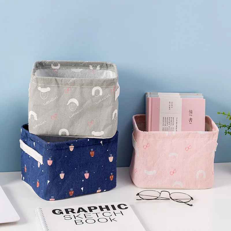 Настольный ящик для хранения, водонепроницаемая льняная корзина для хранения мелочей и игрушек, офисный органайзер для хранения косметики и нижнего белья 20x15x см