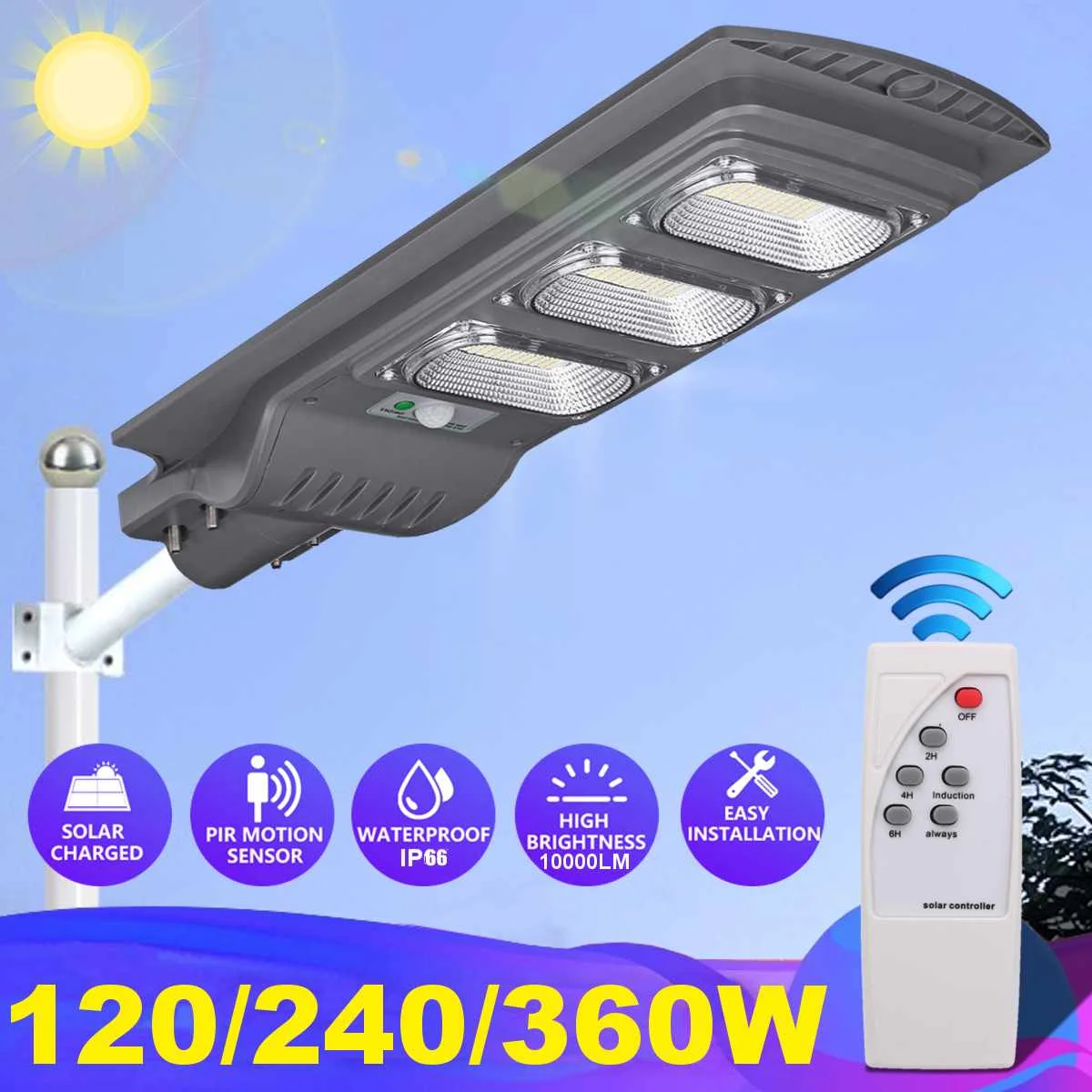 1 солнечный уличный фонарь 120/240/360 Вт