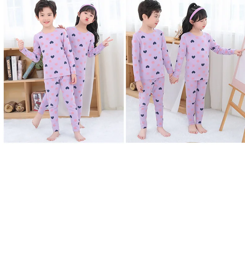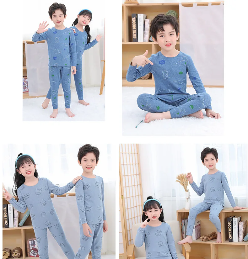 Комплект пижамы для мальчиков и девочек, зимнее термобелье с длинны...