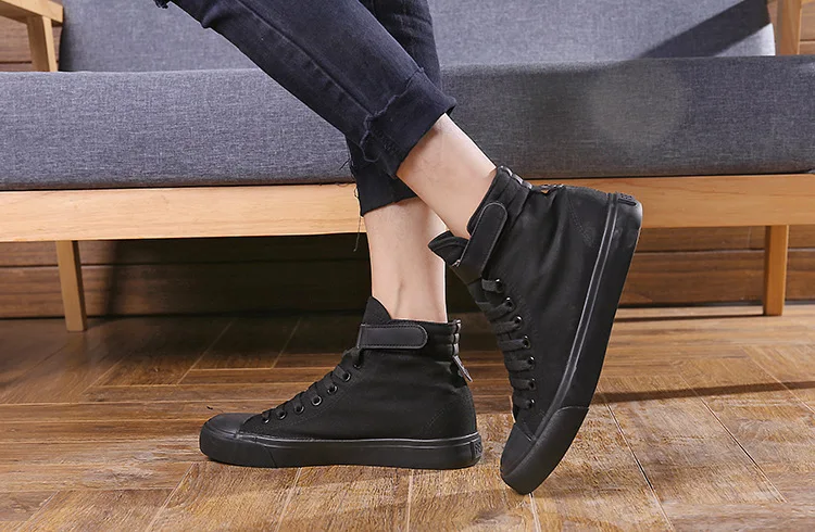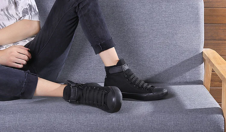 Кроссовки мужские легкие, дышащие холщовые, высокие, однотонные, повседневная обувь, плоская подошва, черные, белые