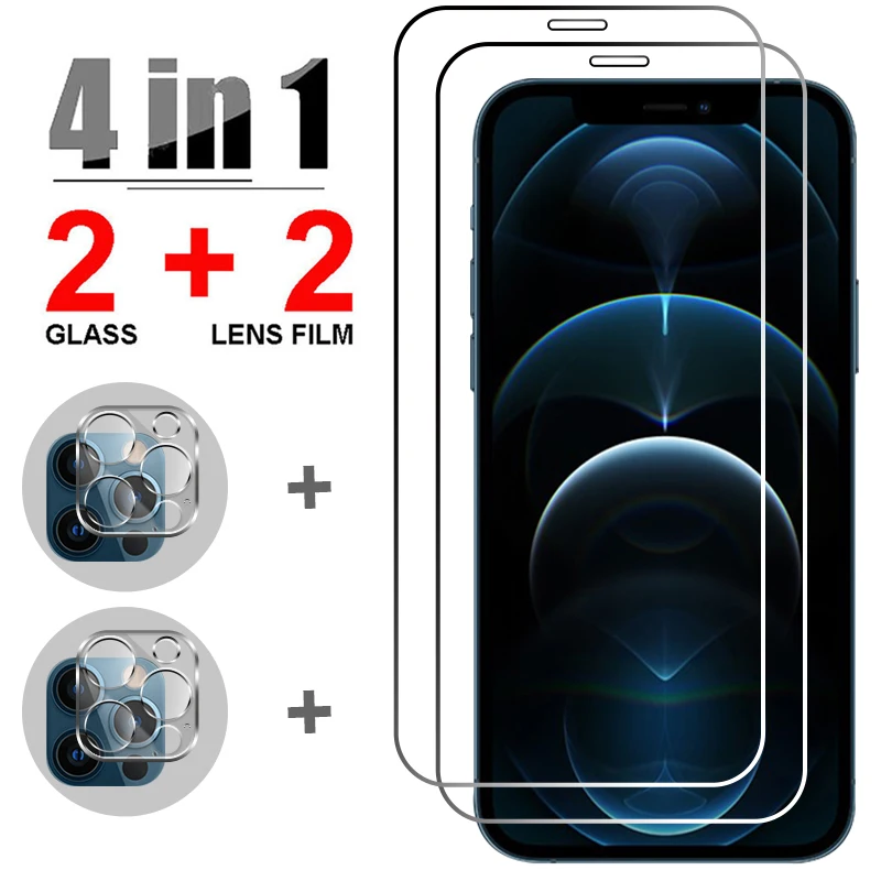 4 в 1 закаленное стекло для iPhone 12 Pro Max 11 12 Pro 12 mini Cam...