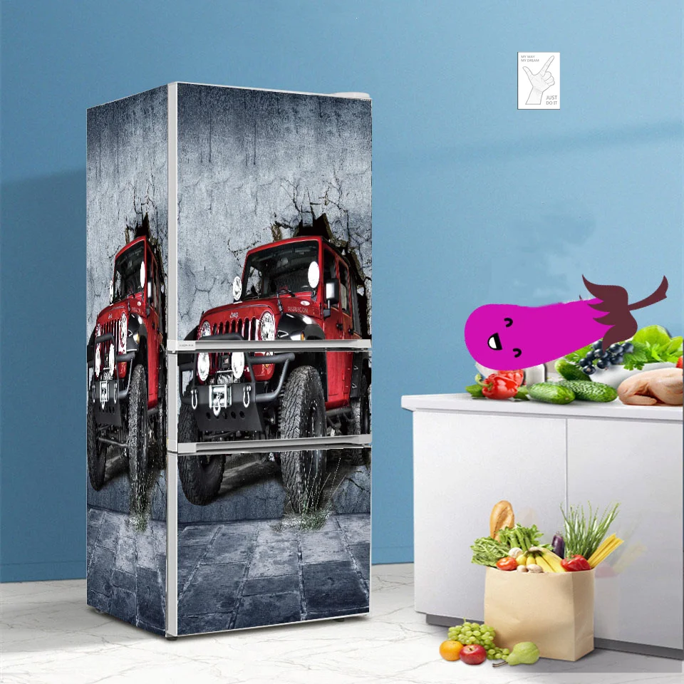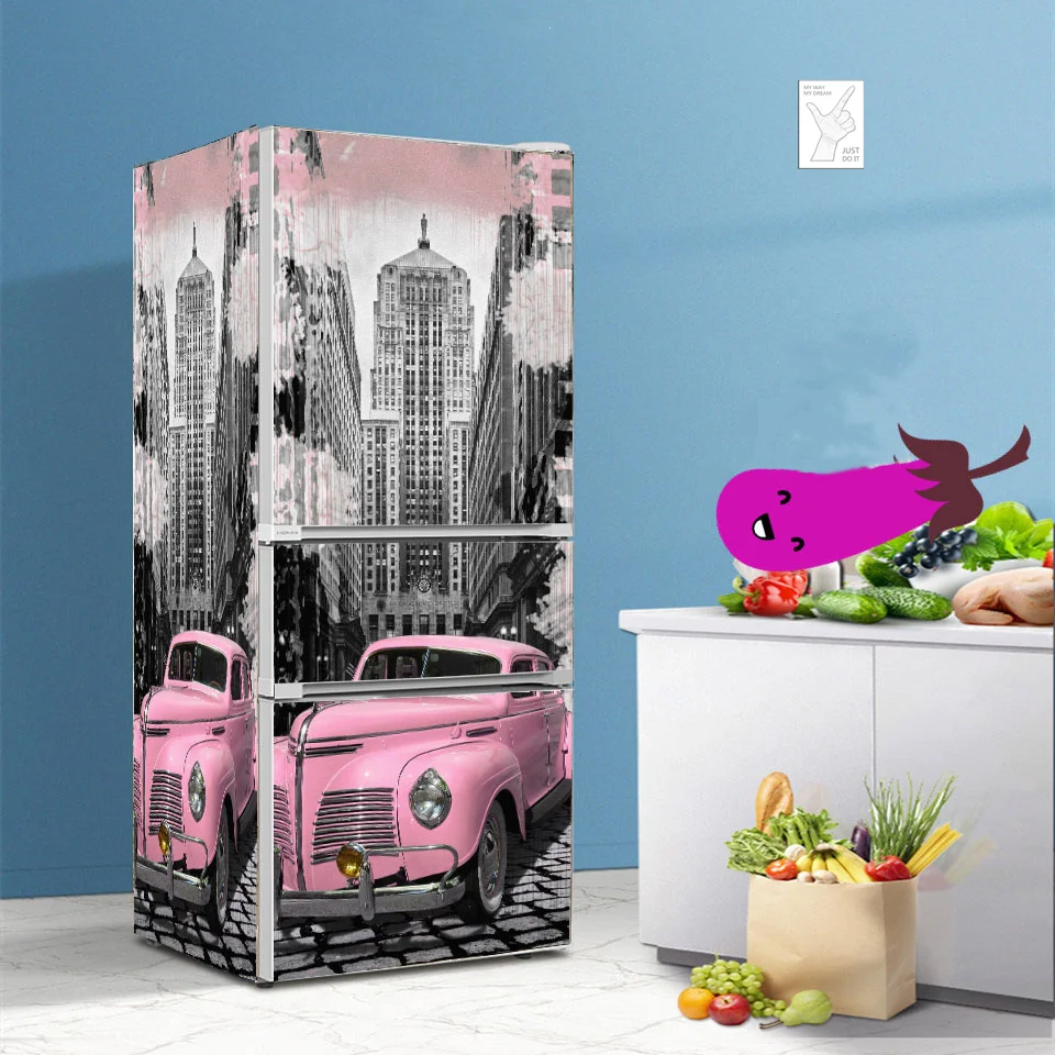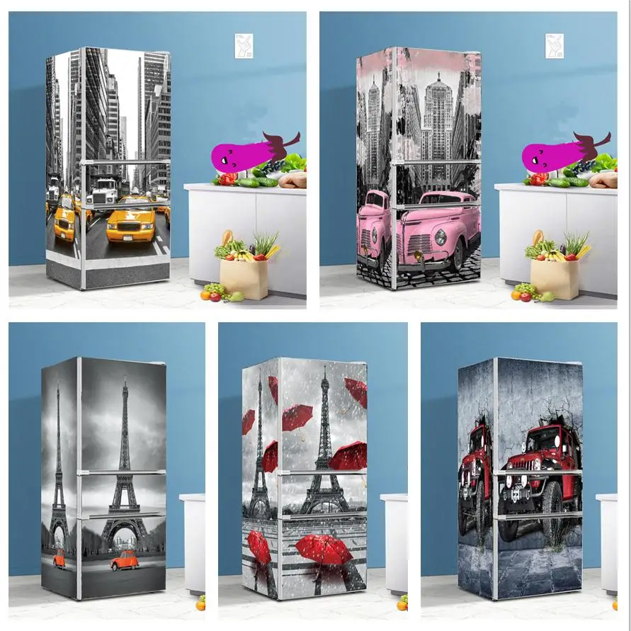 Дорожные автомобильные 3D обои для холодильника, виниловые наклейки для кухонного покрытия холодильника, настенные Стикеры для мебели, настенные дверные стикеры s