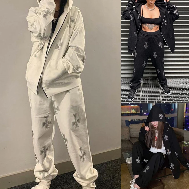 Женские толстовки Goth на молнии в стиле панк, куртка, мешковатые штаны, джоггеры, толстовка в стиле хип-хоп, Свободное пальто