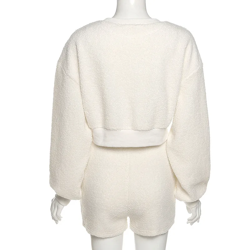 Artsuосенний комплект из двух предметов, однотонный флисовый свитер с круглым вырезом + шорты для женщин, повседневная верхняя одежда