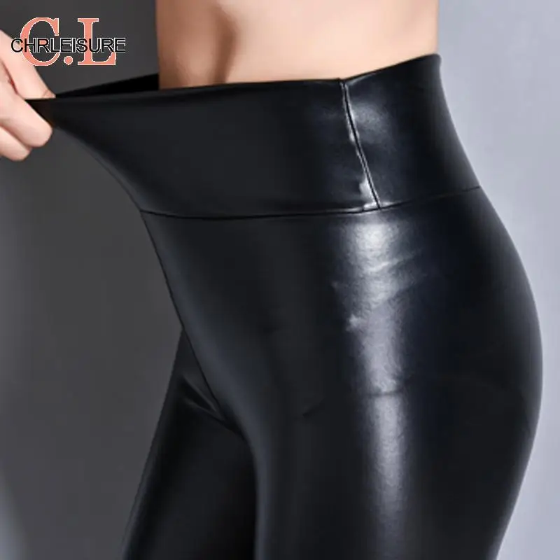 Женские леггинсы с высокой талией CHRLEISURE, осенне-зимние леггинсы из искусственной кожи, с эластичным верхом