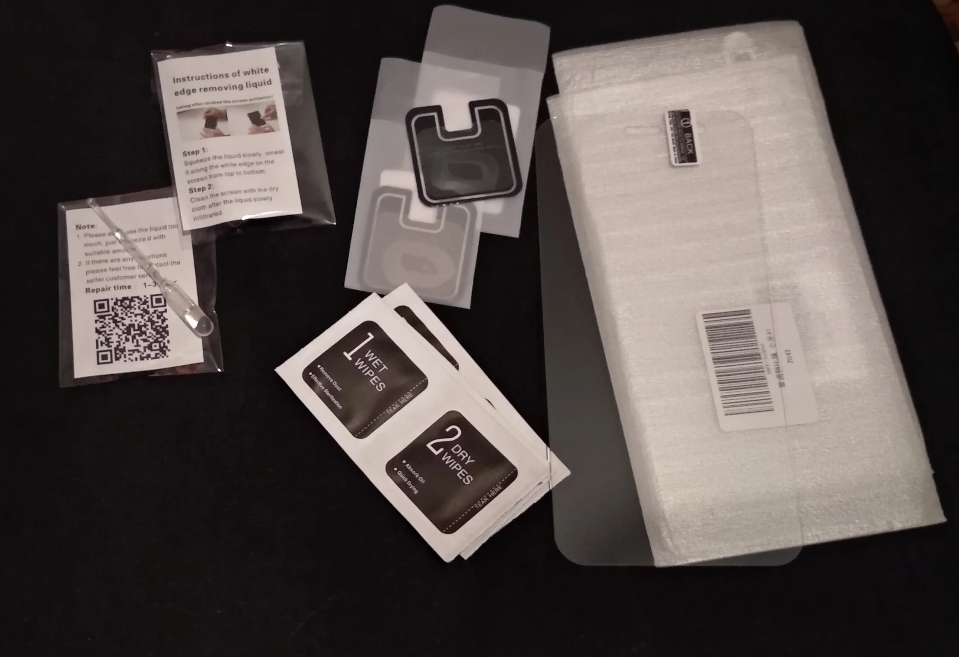 Очень быстрая доставка. Пакет включает в себя: 3 единицы закаленного стекла для экрана. 3 протектора для камеры. 3 пачки салфеток для очистки экрана перед размещением стекла. 3 бутылки с жидкостью для удаления белого края (белая края для удаления жидкости), которая кажется просто маслом. Закаленные кристаллы покрывают весь экран телефона, но белая рамка остается там, где она не прилипает к кривизне экрана. Жидкость для удаления этой белой полосы не полезна: Да, она «удаляет» белую полосу, но только эстетически, и продукт в одежде, сохраняя телефон в кармане. Через 2 дня полоса снова выставлена.
