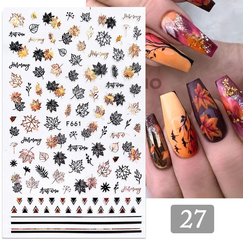 Переливающиеся золотые и черные кленовые листья 3D наклейка для ногтей осенние листья наклейки слайдер для маникюра украшение для ногтей
