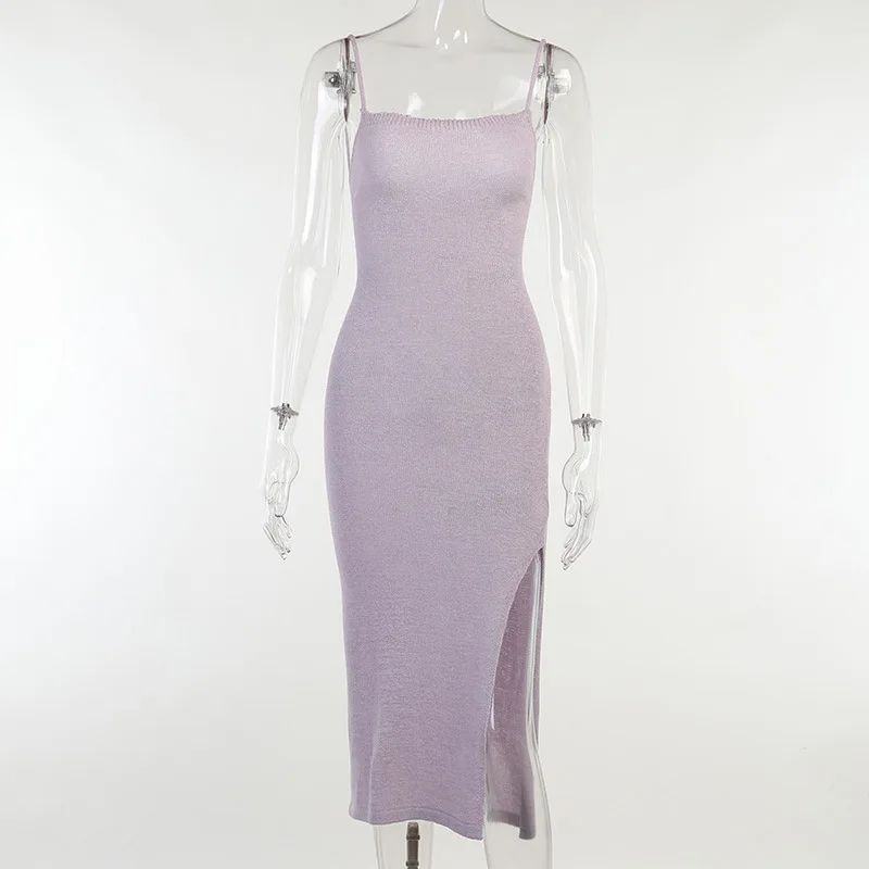 Женское трикотажное платье-миди на бретельках, с открытой спиной