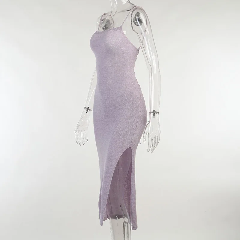 WJFZQM без рукавов с лямкой на шее сексуальное Бандажное платье с открытой спиной женское трикотажное прозрачное пляжное платье летние праздничные длинные платья с разрезом