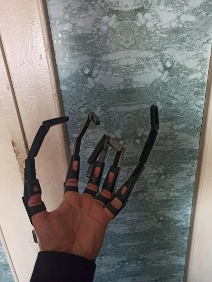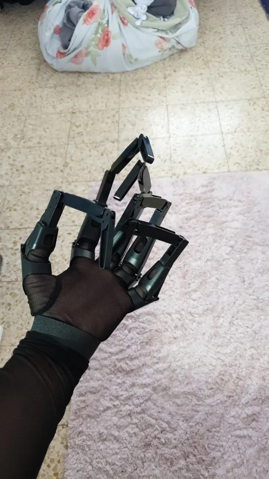 Перчатка просто черная, не такая как на фото. Большая даже для взрослого. Очень хрупкие сочленения - отломился штырек крепления. Вобщем сильно высокая цена для такого качества.