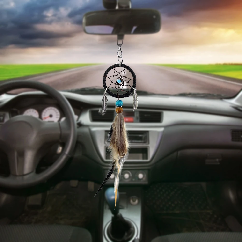 Мини-Ловец снов, Автомобильная подвеска, ветряные колокольчики, украшение с пером, домашний декор и настенное украшение, искусственные подарки