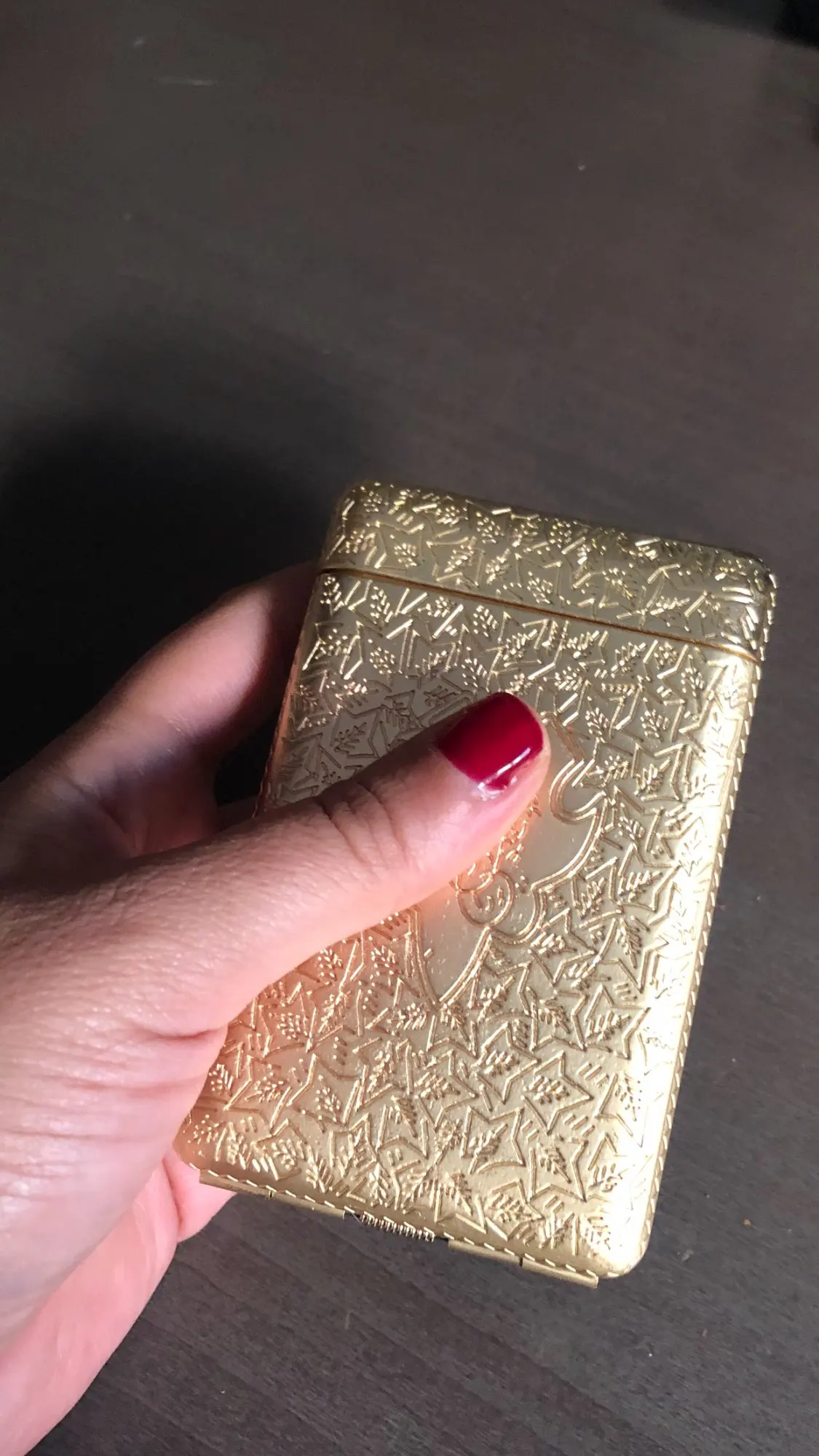 Портсигар очень красивый. Качественный, только надо понимать, что он довольно тяжелый. Продавцу спасибо, отправил быстро.