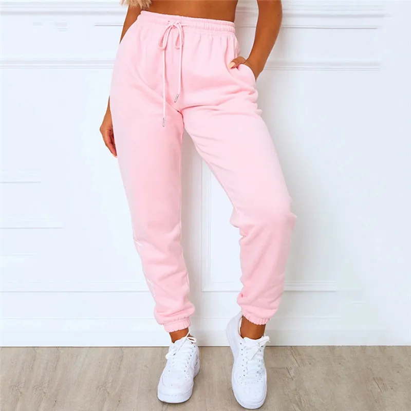 Женские повседневные свободные спортивные штаны, 7 цветов, Женские однотонные спортивные штаны для бега с эластичным поясом и завязками с карманами
