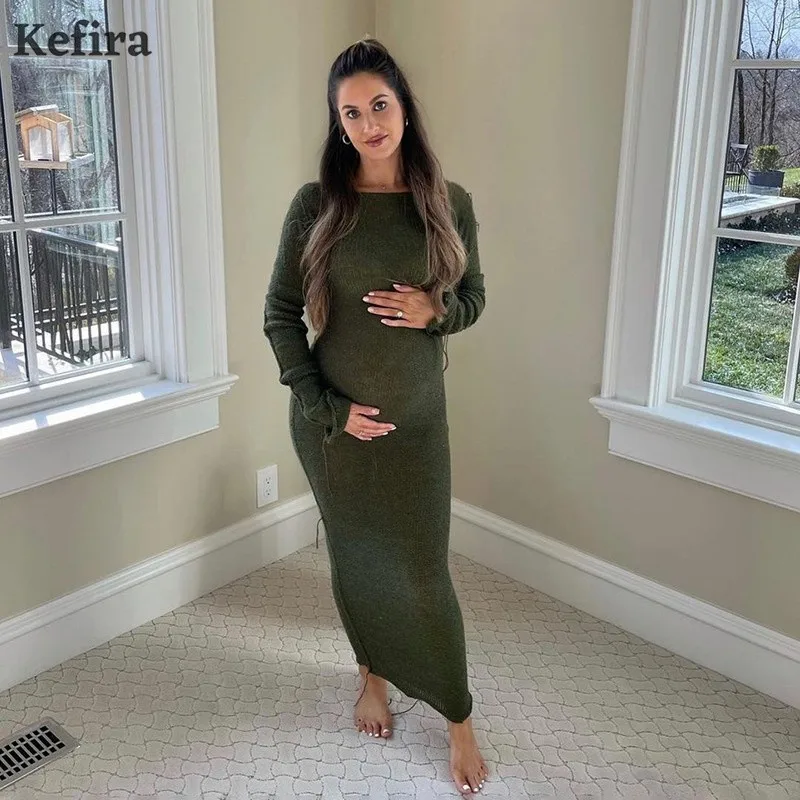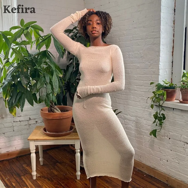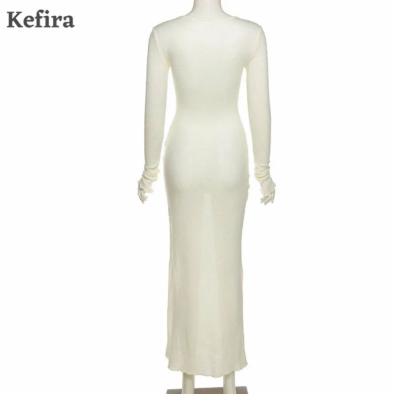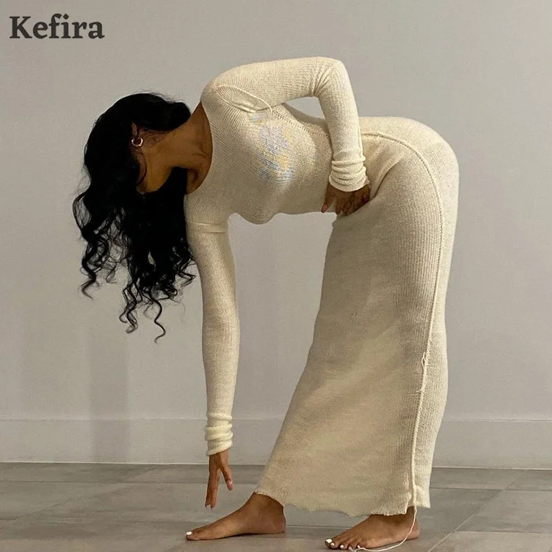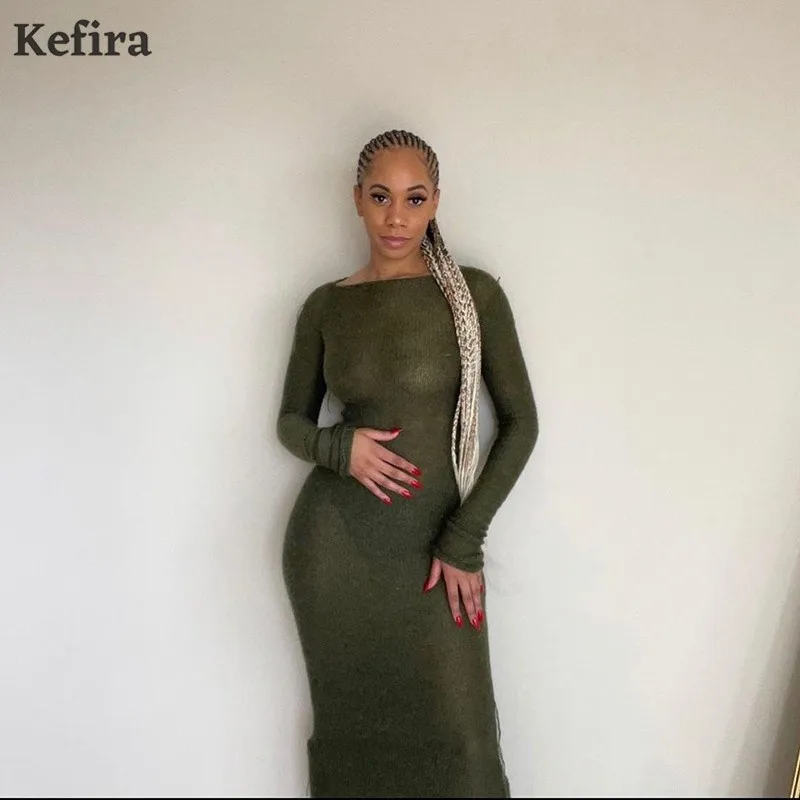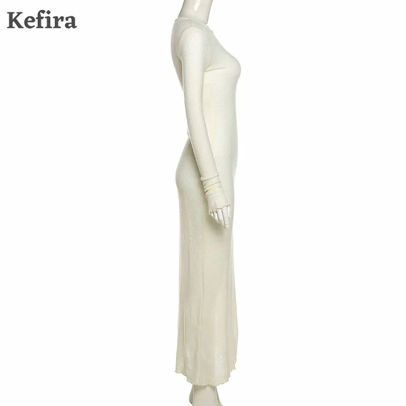 Женское трикотажное платье макси Kefira, элегантное облегающее платье с длинным рукавом, круглым вырезом и оборками, уличная мода, Осень-зима 2022