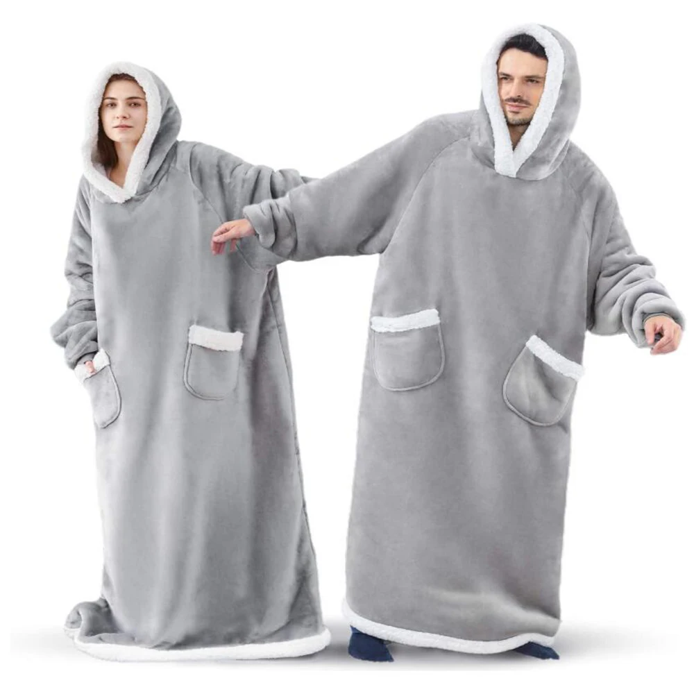 Толстовки, свитшот, Женский Зимний пуловер оверсайз, ТВ одеяло, толстовка, очень длинное гигантское фланелевое одеяло, рукава, Женская толстовка