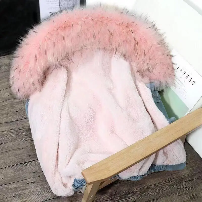 Куртка женская джинсовая, осенне-зимняя, теплая, пушистая, с меховы...