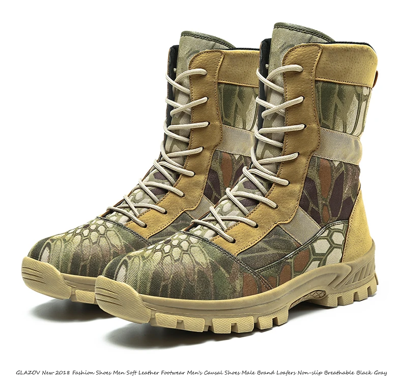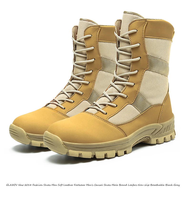 Ботинки мужские тактические, кожаные уличные кроссовки с круглым носком, высокие ботинки в стиле милитари, черные, повседневная обувь, осень