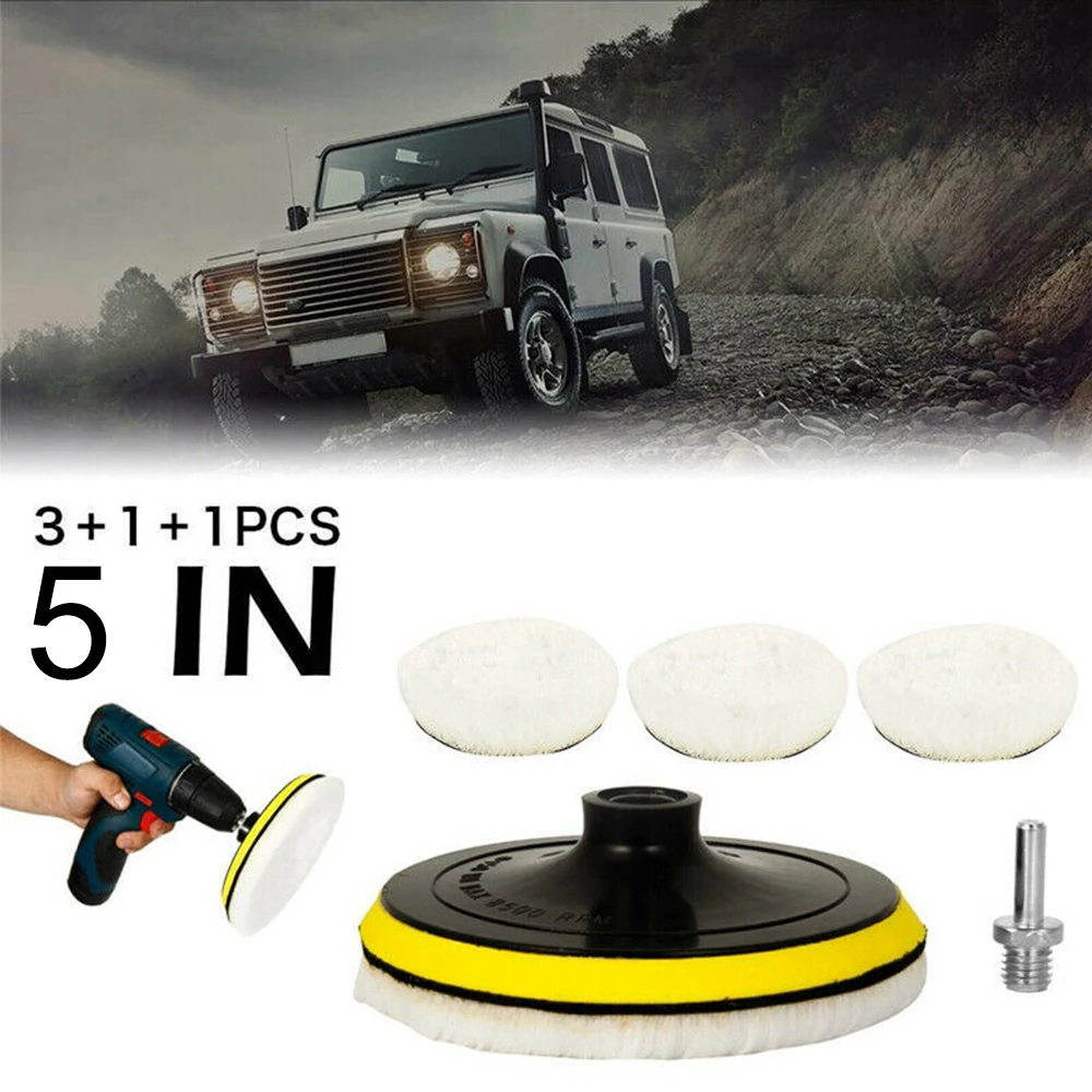 5 шт. 5-дюймовые автомобильные полировальные колодки, набор мягкой шерстяной швабры для автомобильного полировального станка, адаптер для дрели, полировальные диски для кузова автомобиля
