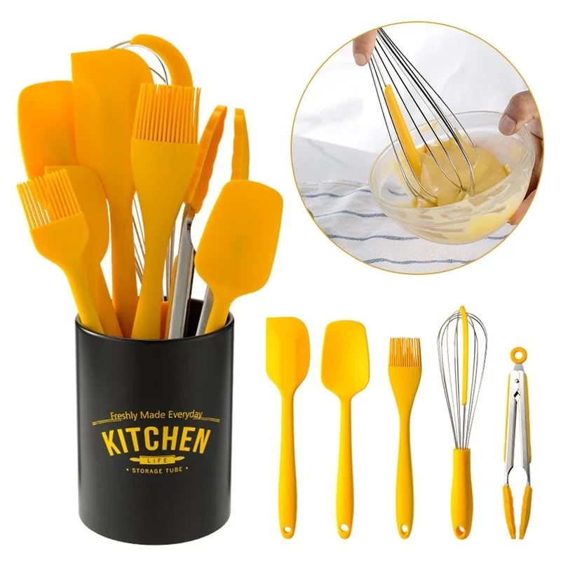 Набор желтых силиконовых кухонных инструментов, 10 шт., антипригарн...