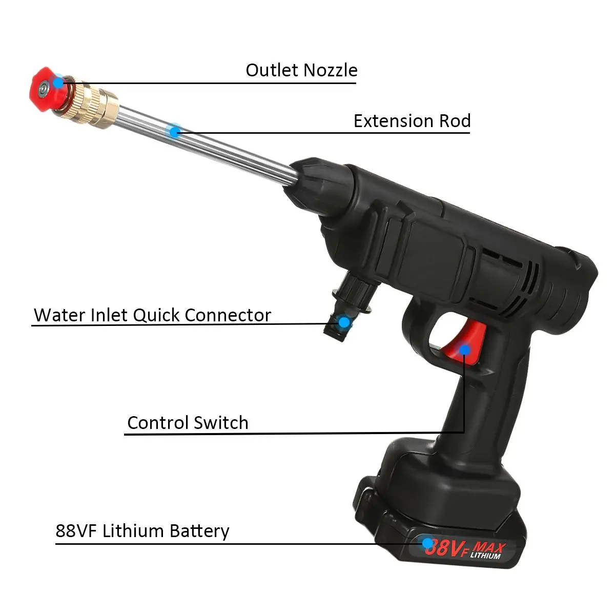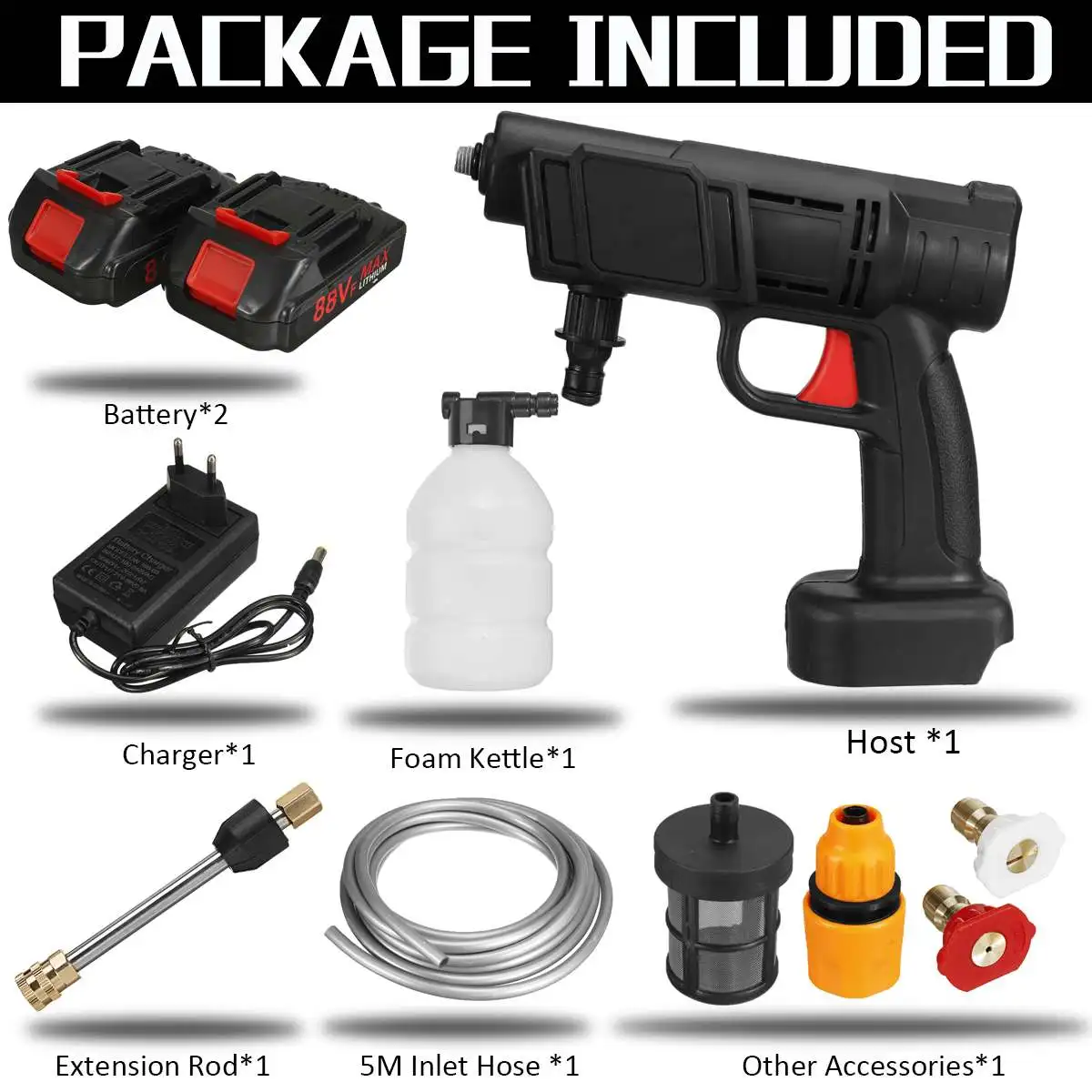 Аккумуляторный пистолет для мойки автомобилей высокого давления, 88 в, 1500 Вт