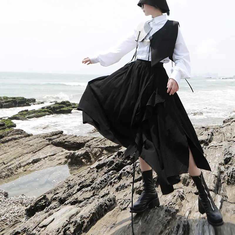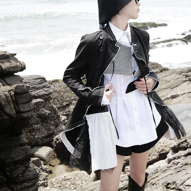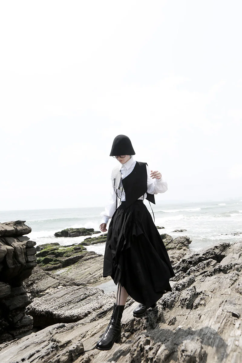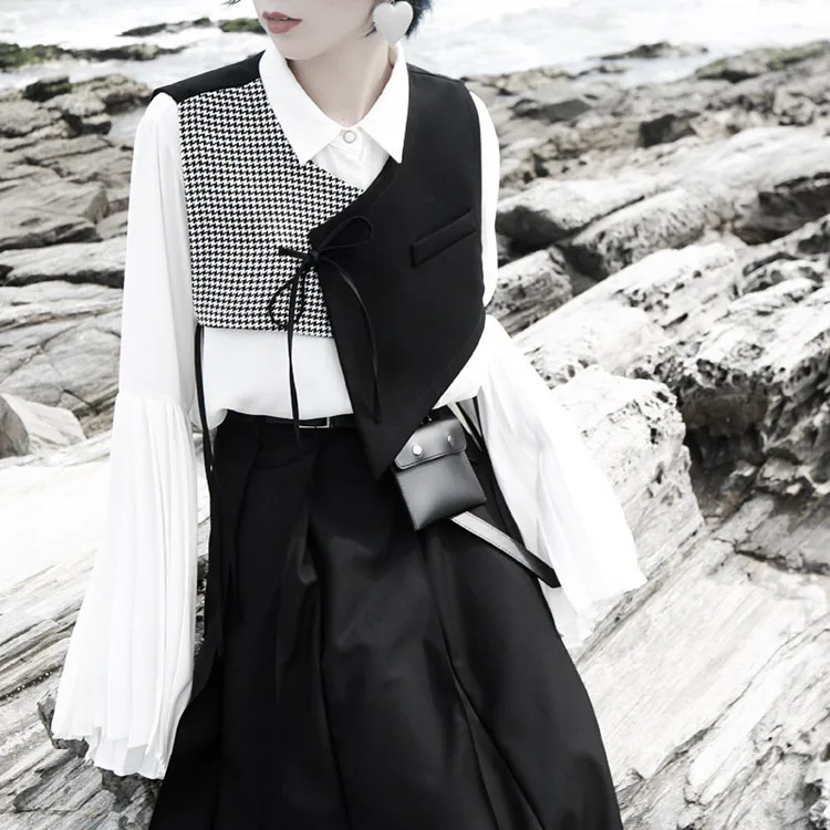 Осенняя структура 2021 года-Qiandao, сетчатый сращивающийся жилет с асимметричным зажимом, женский жилет