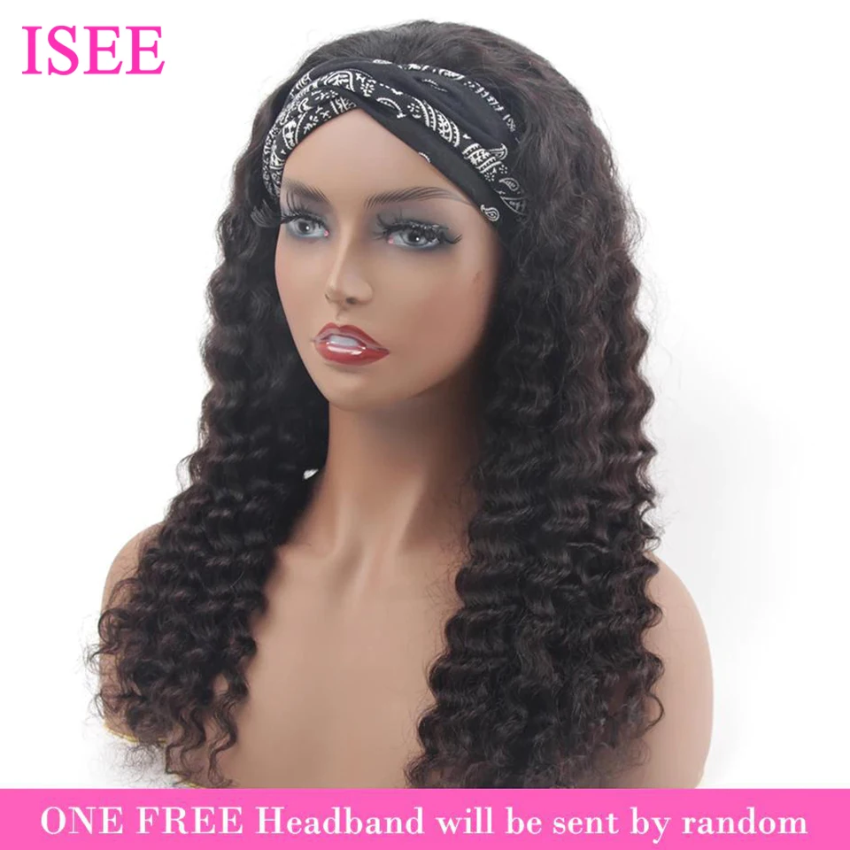 Brazilian Deep Wave Headband Wig Natural Hair 180% Density ISEE HAI...
