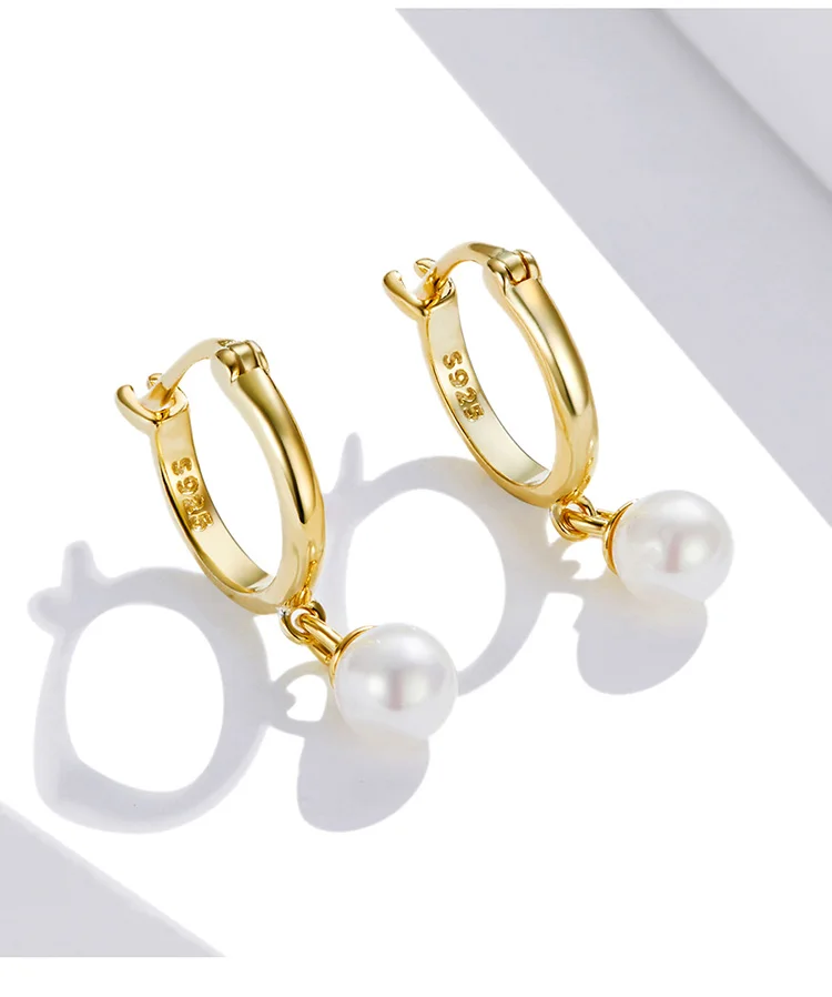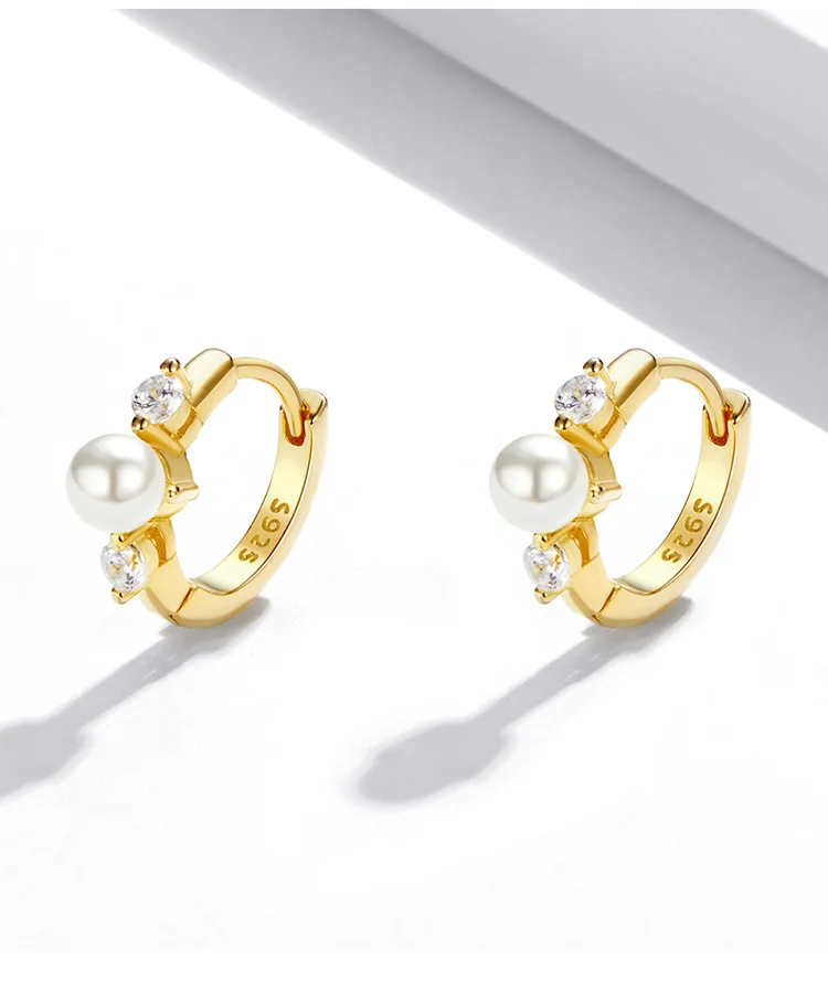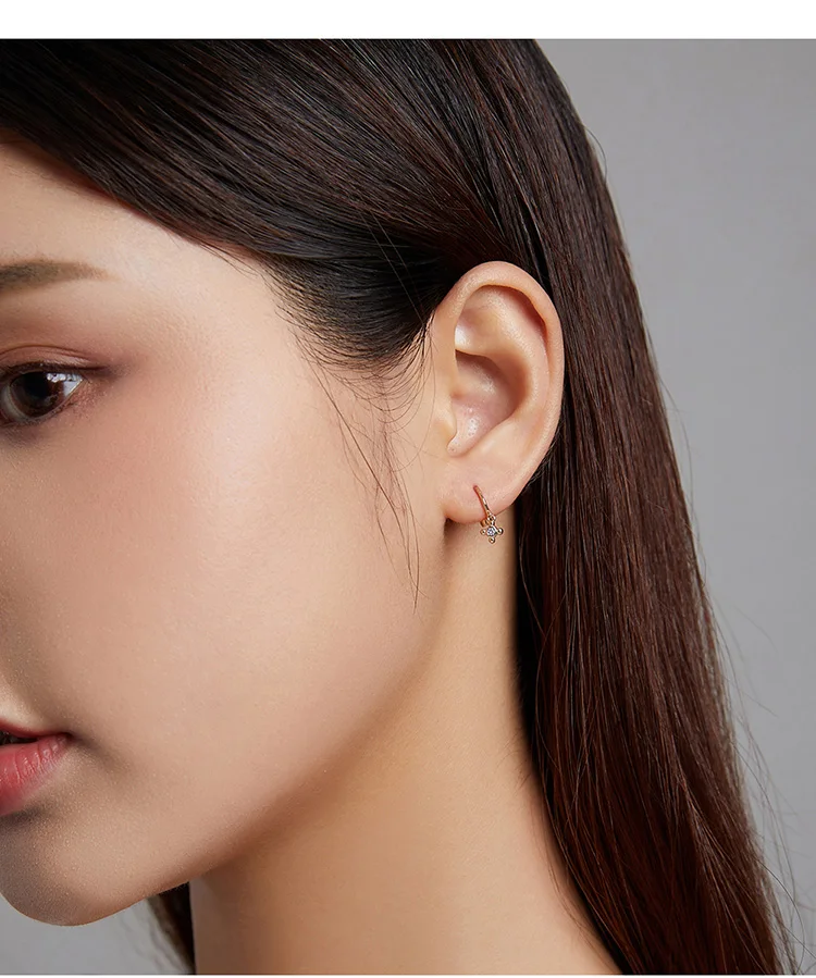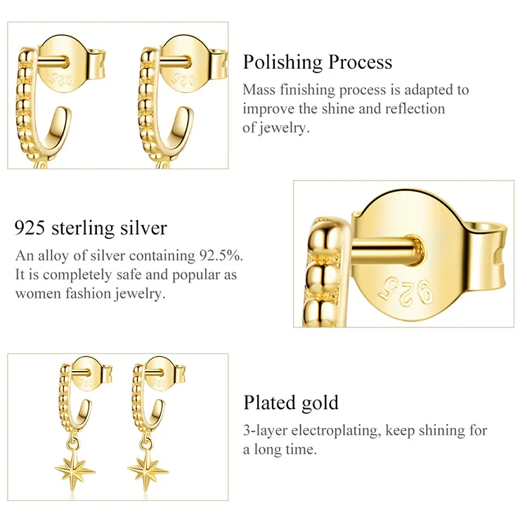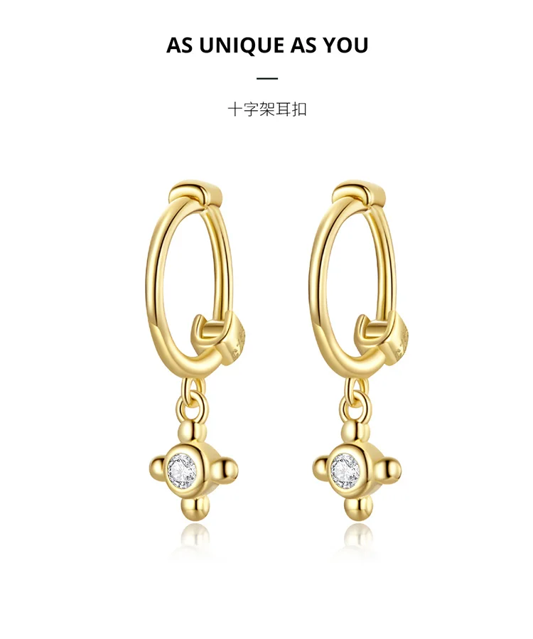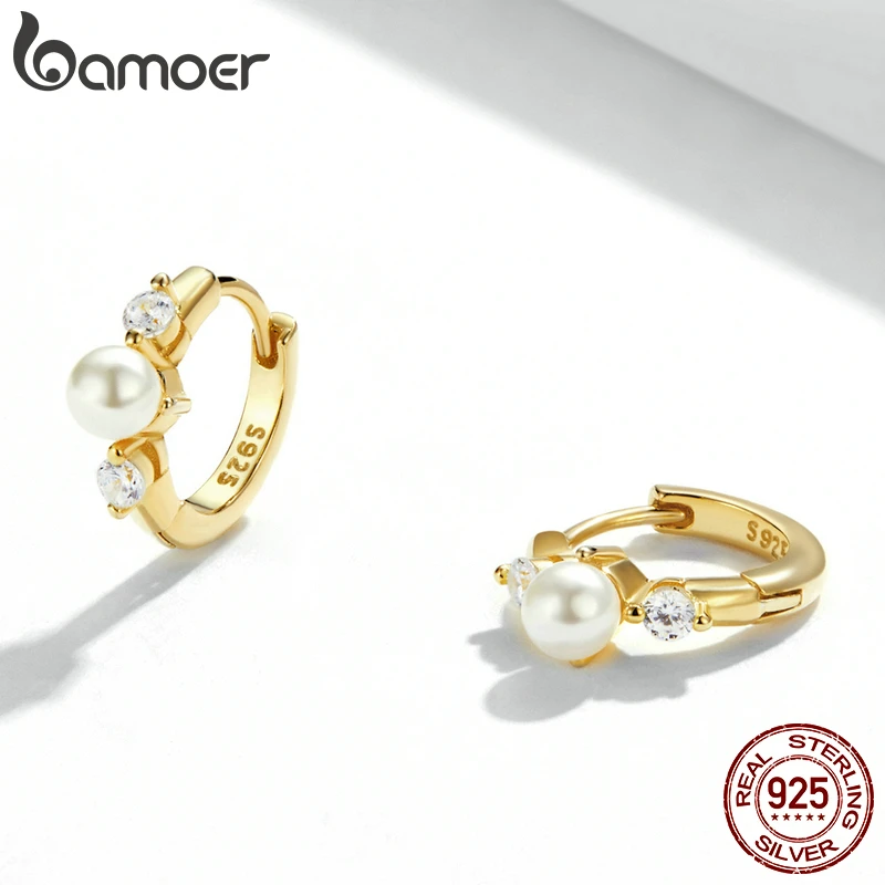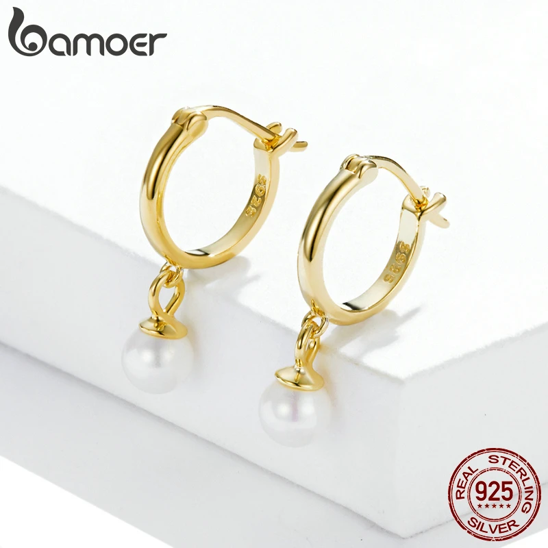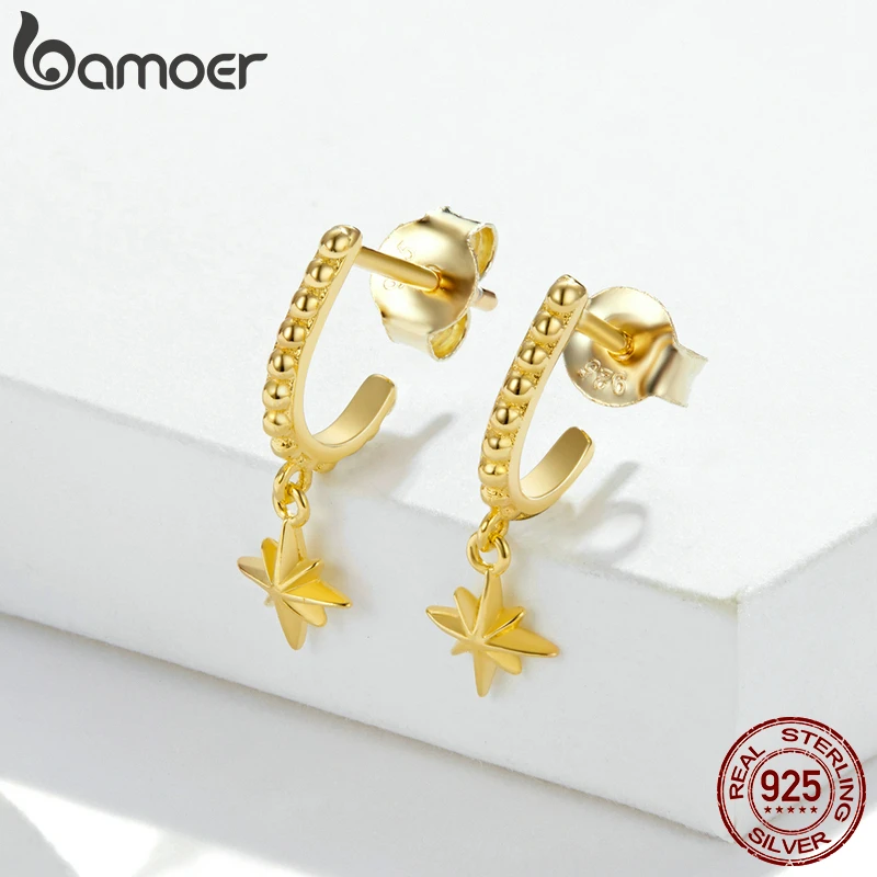 Bamoer золотые серьги-кольца 925 пробы Серебряная Звезда Циркон пряжки для ушей серьги-капли с крестиком жемчужные серьги для женщин подарок