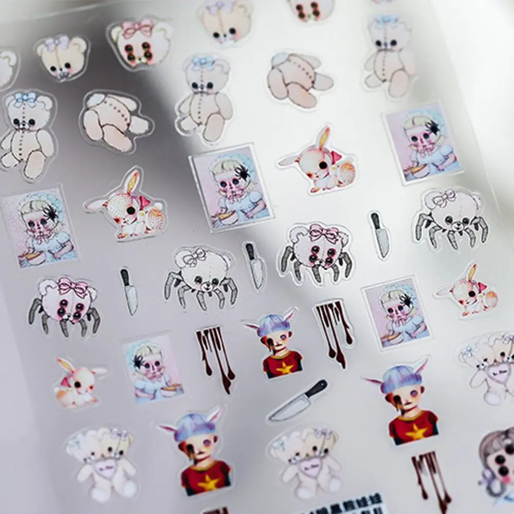 Темная кукла из фильма ужасов стикер для ногтей ультра-тонкий ужас триллер Ragdoll наклейка с летучей мышью японское украшение для ногтей