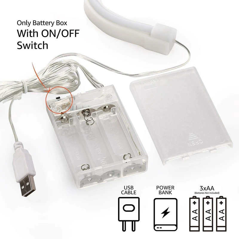 Питание от аккумулятора и USB: Используйте 3 батарейки AA (не входят в комплект) или usb-разъем