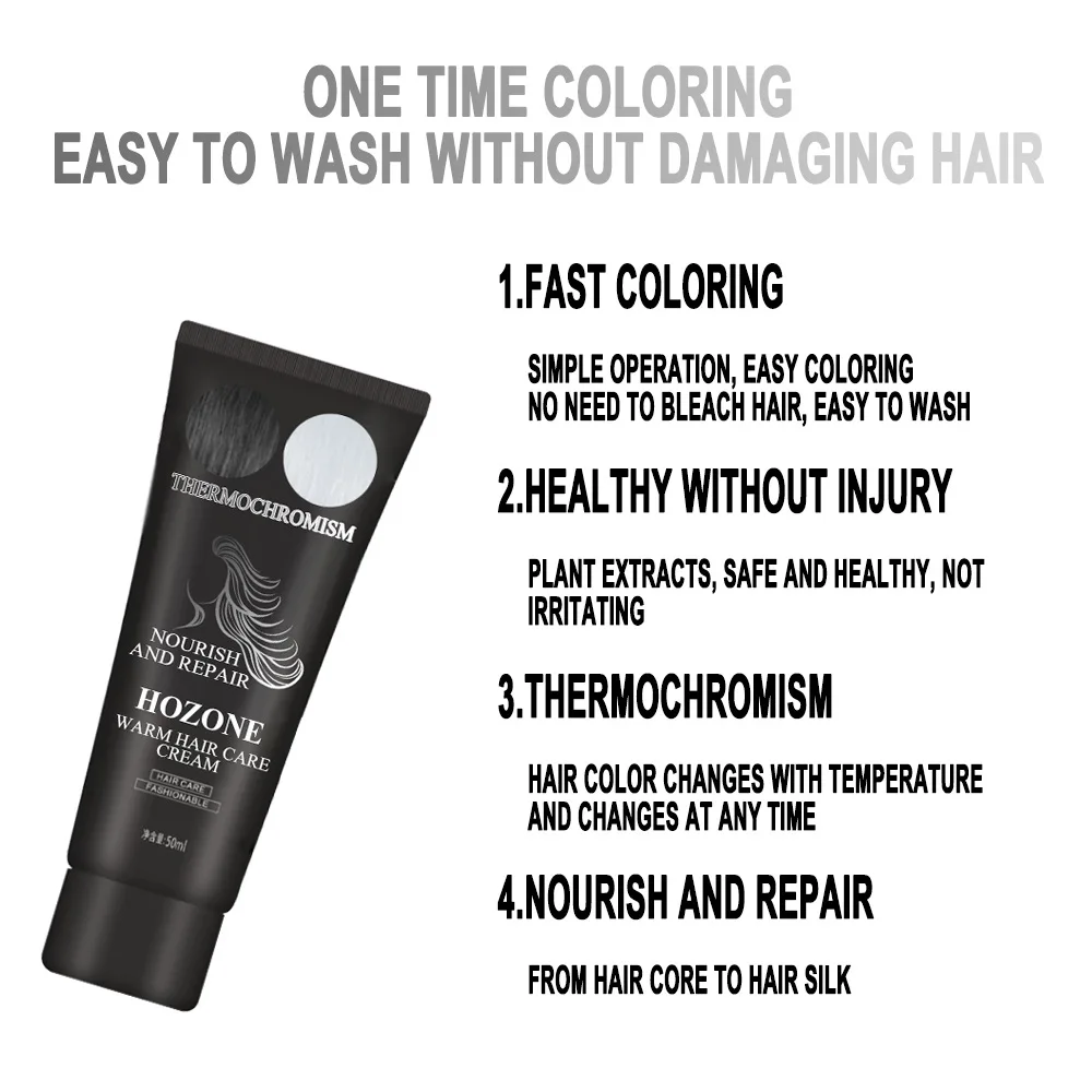 Прост в использовании! Все, что вам нужно сделать, это нанести цвет на чистые, сухие волосы без кондиционера или продукта. Погрузите губку-аппликатор в цветную банку для крема и приложите ее к замку и Веселитесь! После нанесения цвета, высушите волосы или нанесите выпрямитель для волос на пучок волос, волосы превратятся в другой цвет. Когда вы подвергаете его воздействию высоких температур, Временный краситель меняет цвет, и когда ваши волосы остынут, он изменяется на первый цвет.