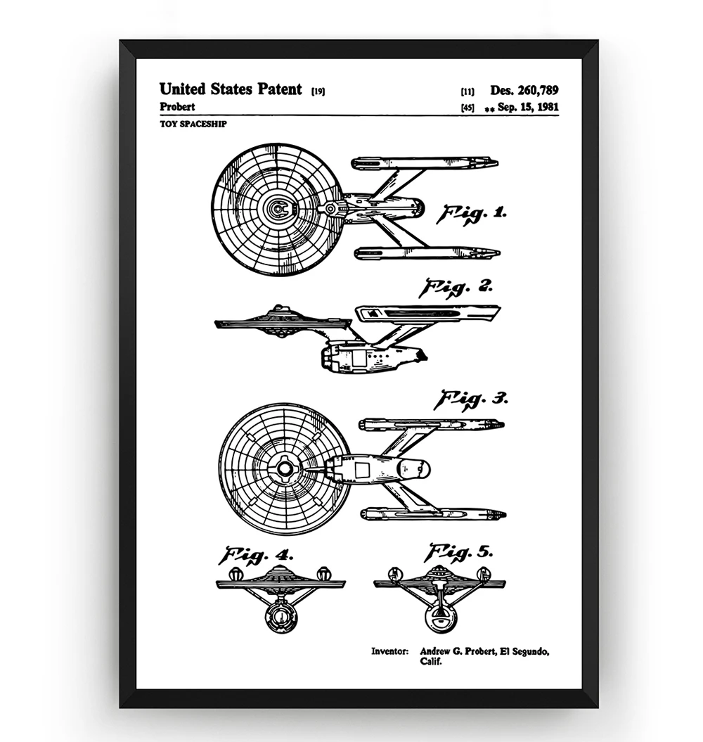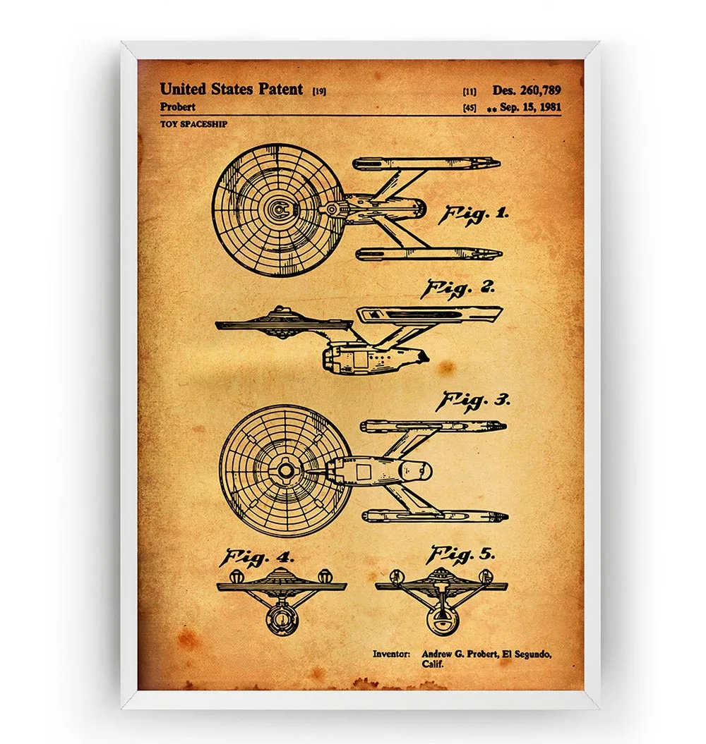 Винтажный Звездный Путь Энтерпрайз 1981, патентный план, настенная Картина на холсте, скандинавские постеры и принты, картины для декора комнаты