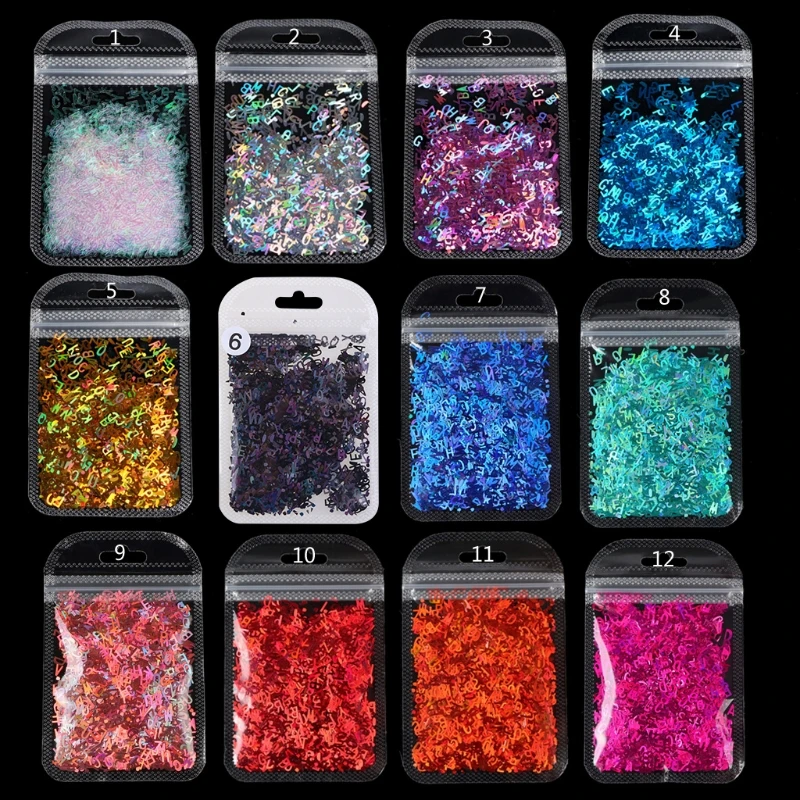 12 цветов Алфавит голографические лазерные буквы крупные блестки эп...