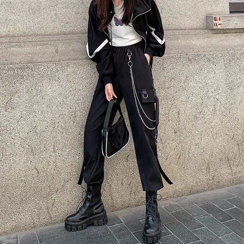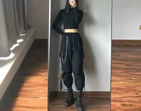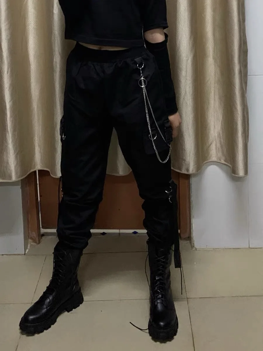 Джоггеры в готическом стиле, черные брюки-султанки в стиле Харадзюку с завышенной талией, брюки-султанки в стиле панк и готика, стиль хип-хоп