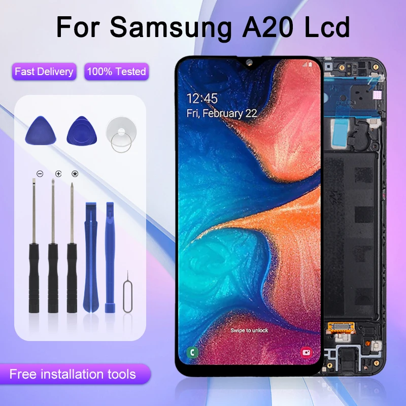 OLED-дисплей 6,4 дюйма, оригинальный экран A205F для Samsung Galaxy A205, ЖК-дисплей A20, сенсорная панель, дигитайзер в сборе с рамкой