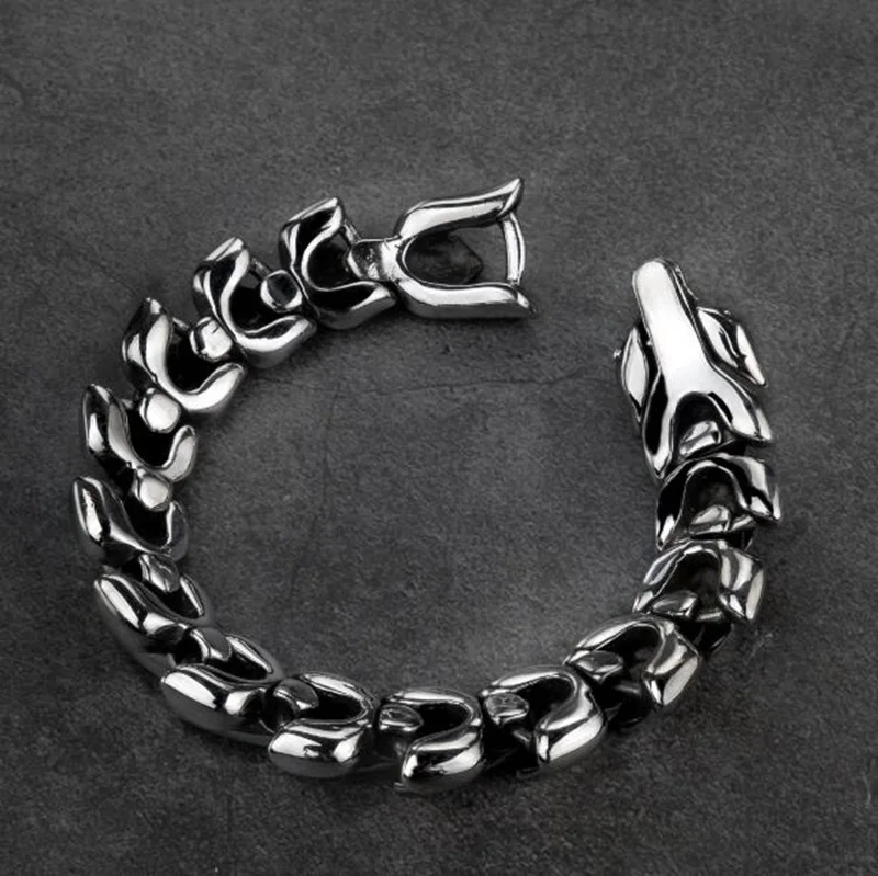 Мужской браслет в стиле панк с серебряным драконом, простой браслет-цепочка с крючком в рок-стиле Je...
