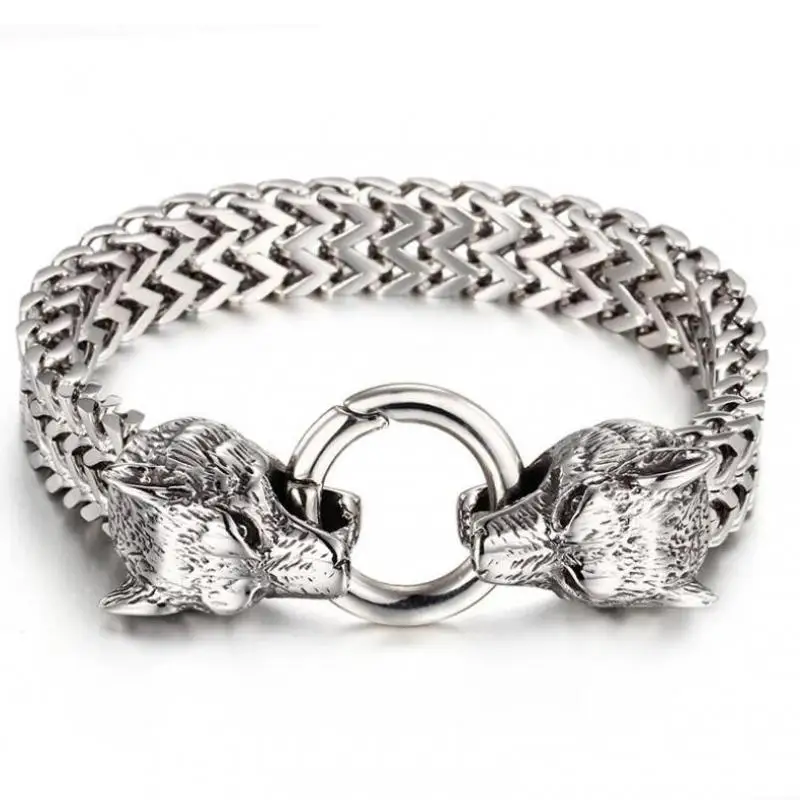 Мужской плетеный металлический браслет с головой волка, Новинка стиль викингов года