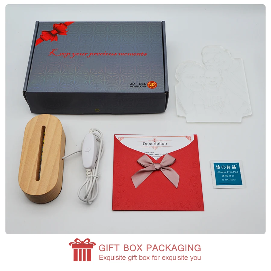 Фотография текст на заказ 3D ночник деревянное основание настольная лампа персональный подарок USB питание пользовательский светильник праздничный подарок Прямая поставка