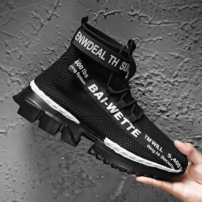 Кроссовки-носки мужские высокие, дышащие вязаные, повседневная обув...